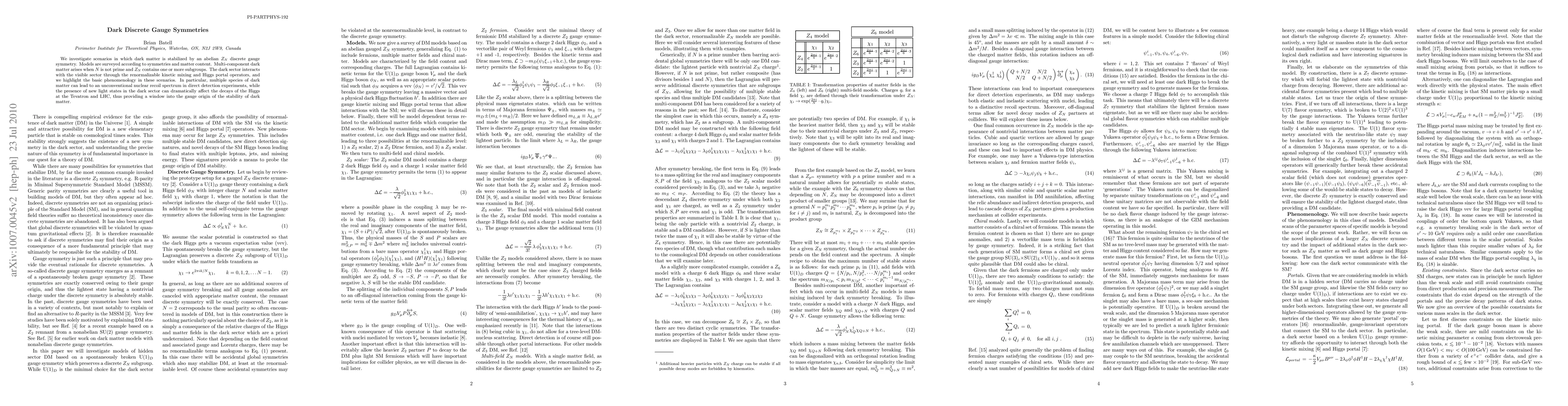 We investigate scenarios in which dark matter is stabilized by an abelian Z_N discrete gauge symmetry. Models are surveyed according to symmetries and matter content. Multi-component dark matter arises when N is not prime and Z_N contains one or more subgroups. The dark sector interacts with the visible sector through the renormalizable kinetic mixing and Higgs portal operators, and we highlight the basic phenomenology in these scenarios. In particular, multiple species of dark matter can lead to an unconventional nuclear recoil spectrum in direct detection experiments, while the presence of new light states in the dark sector can dramatically affect the decays of the Higgs at the Tevatron and LHC, thus providing a window into the gauge origin of the stability of dark matter.