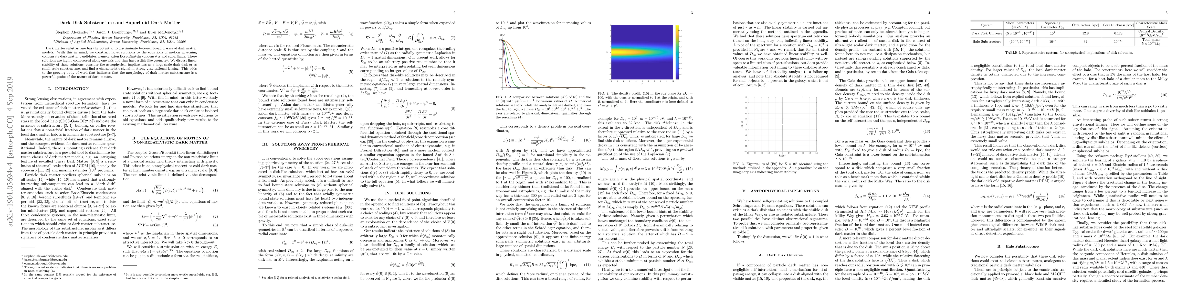 This paper explores novel disk-shaped substructures of condensate dark matter, specifically axion Bose-Einstein condensates and superfluids, and examines their stability and astrophysical implications, including potential signals in strong gravitational lensing. It suggests that the morphology of dark matter substructures can significantly inform models of dark matter.
