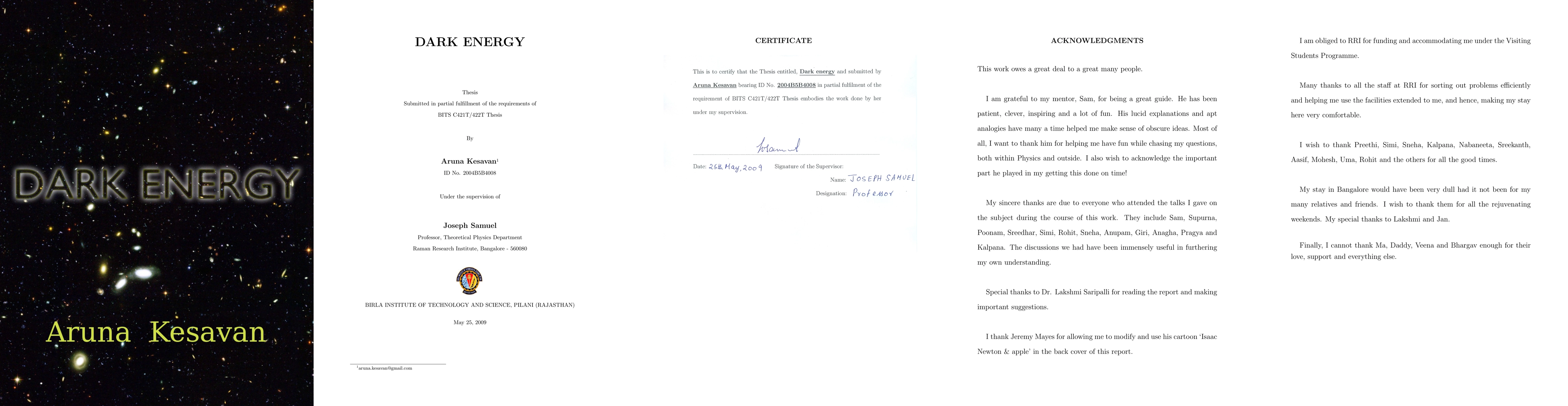 Dark energy is one of the mysteries of modern science. It is unlike any known form of matter or energy and has been detected so far only by its gravitational effect of repulsion. Owing to its effects being discernible only at very very large distance scales, dark energy was only detected at the turn of the last century when technology had advanced enough to observe a greater part of the universe in finer detail. The aim of the report is to gain a better understanding of the mysterious dark energy. To this end, both theoretical methods and observational evidence are studied. Three lines of evidence, namely, the redshift data of type Ia supernovae, estimates of the age of the universe by various methods, and the anisotropies in the cosmic background radiation, build the case for existence of dark energy. The supernova data indicate that the expansion of the universe is accelerating. The ages of the oldest star clusters in the universe indicate that the universe is older than previously thought to be. The anisotropies in the cosmic microwave background radiation suggest that the universe is globally spatially flat. If one agrees that the dynamics of the geometry of the universe is dictated by its energy-momentum content through Einstein's general theory of relativity, then all these independent observations lead to the amazing conclusion that the amount of energy in the universe that is presently accounted for by matter and radiation is not enough to explain these phenomena. One of the best and simplest explanations for dark energy is the cosmological constant. While it does not answer all questions, it certainly does manage to explain the observations. The following report examines in some detail the dark energy problem and the candidacy of the cosmological constant as the right theory of dark energy.