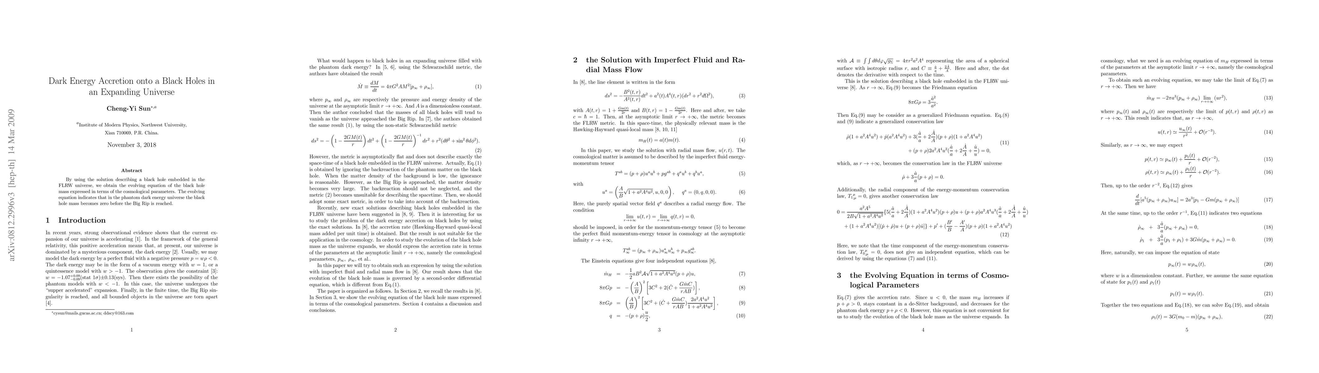 This paper explores how dark energy accretion affects a black hole's mass in an expanding universe, revealing that in a phantom dark energy scenario, the black hole's mass diminishes to zero before the universe undergoes the Big Rip.