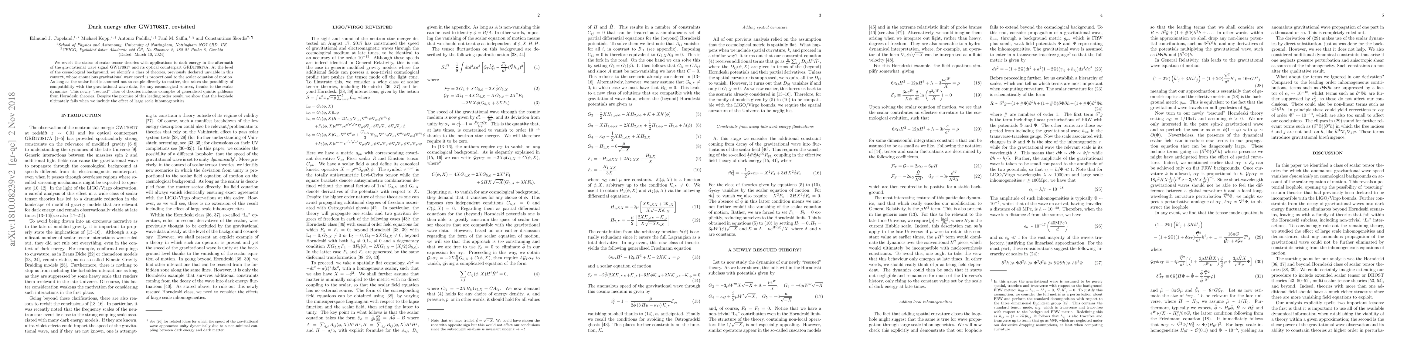 This paper revisits scalar-tensor theories for dark energy, finding that certain previously dismissed models can now be compatible with gravitational wave data from GW170817 due to proportional anomalous gravitational wave speed. However, the authors conclude that these theories still fail when considering the influence of large scale inhomogeneities.