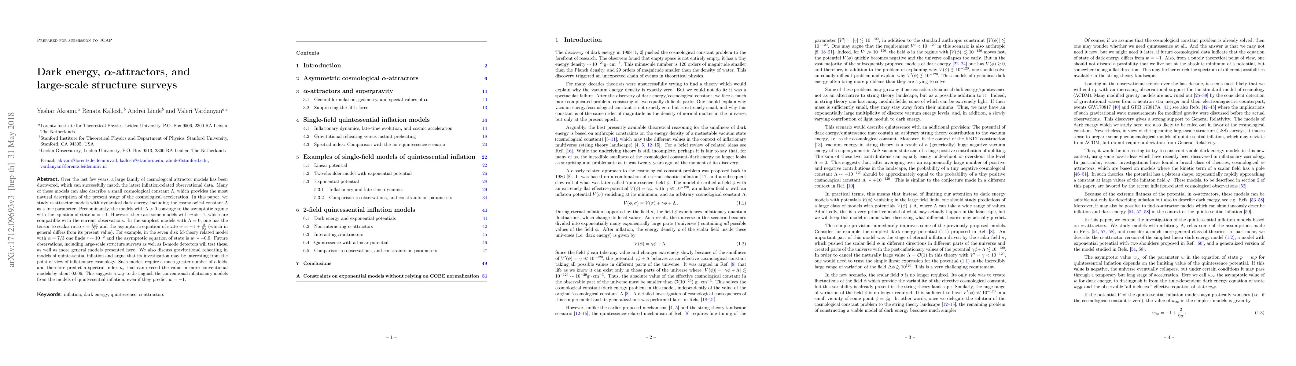 This paper explores $\alpha$-attractor models with dynamical dark energy, focusing on their compatibility with current observational data and large-scale structure surveys. It finds that while most models converge to a cosmological constant with $w=-1$, some allow for different values of $w$, and predicts distinct spectral indices for quintessential inflation models compared to conventional ones.