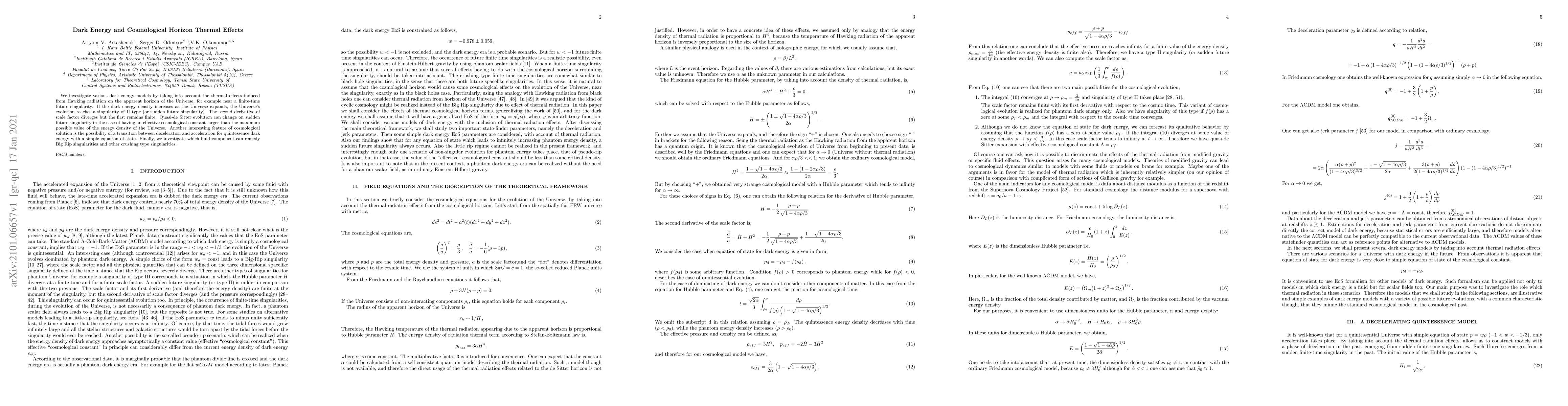 This paper explores dark energy models considering thermal effects from Hawking radiation on the Universe's apparent horizon, leading to a finite-time future singularity. It examines scenarios where dark energy density increases, potentially causing a sudden future singularity, and investigates transitions between deceleration and acceleration in quintessence models.