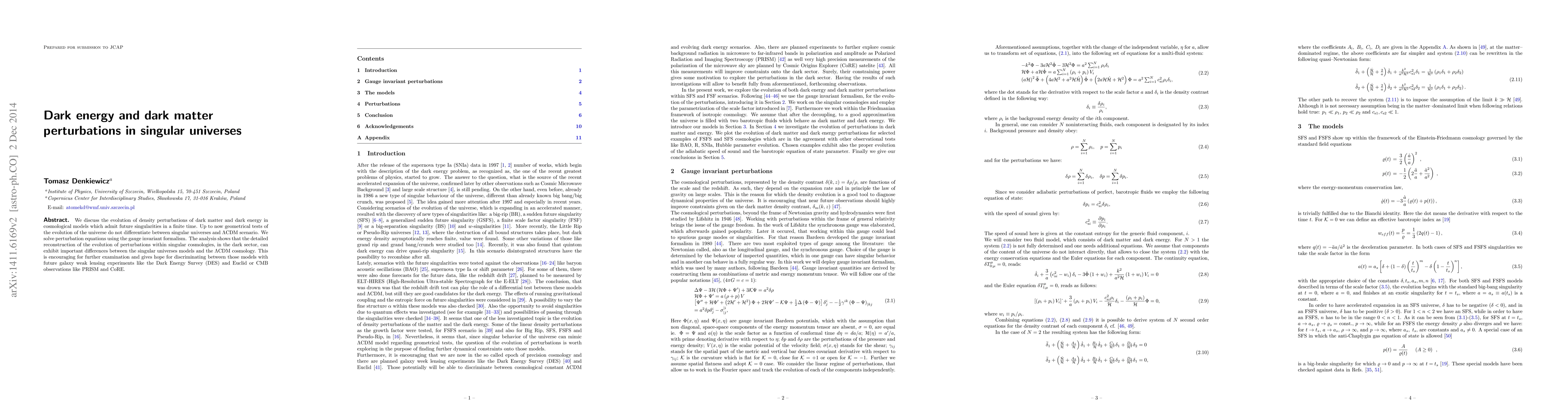 This paper investigates the evolution of dark matter and dark energy perturbations in cosmological models that predict future singularities, revealing significant differences compared to the $\Lambda$CDM model. These differences may allow future galaxy weak lensing and CMB observations to distinguish between singular universe models and the standard cosmological model.