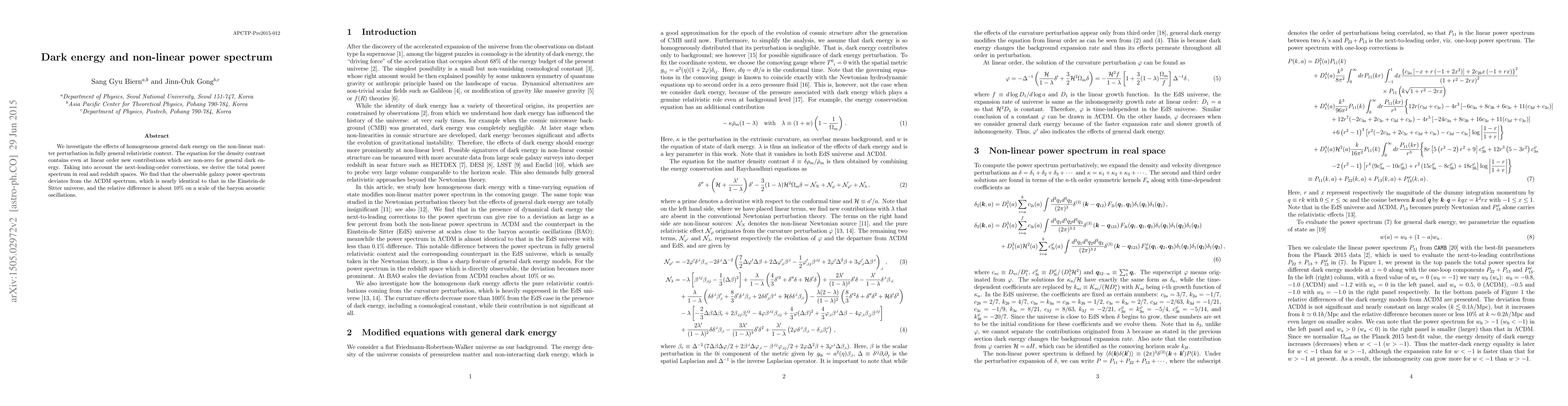 This paper explores how homogeneous general dark energy influences non-linear matter perturbations in a fully relativistic framework, revealing new contributions to the density contrast equation. The derived power spectrum shows a 10% deviation from the LambdaCDM model on scales comparable to baryon acoustic oscillations, indicating significant observable differences.