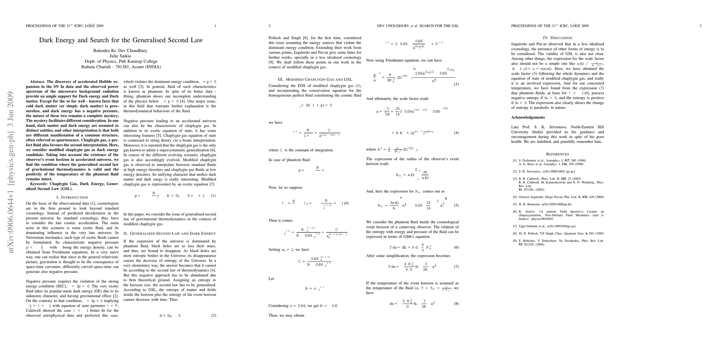 This paper explores dark energy and its potential connection to dark matter through the modified Chaplygin gas model. It investigates the generalized second law of thermodynamics in an accelerated universe, ensuring the validity of this law and the positivity of phantom fluid temperature.