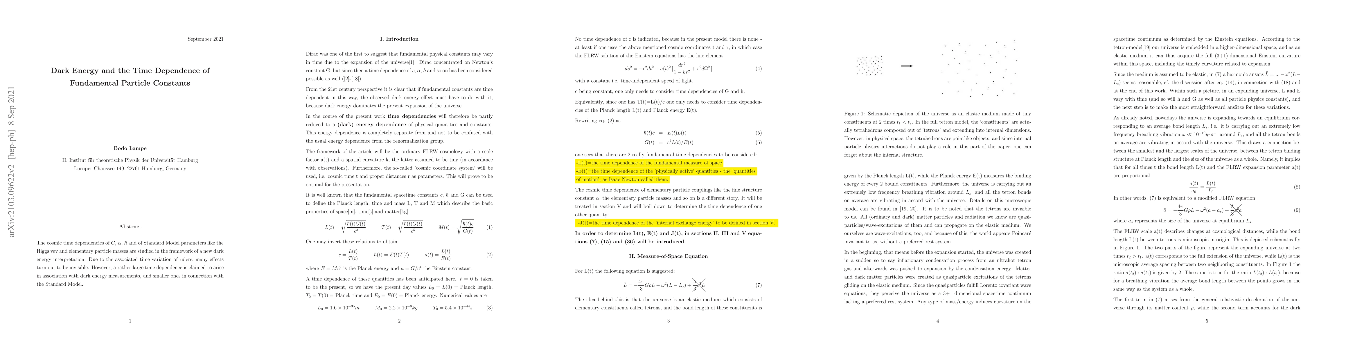 The cosmic time dependencies of $G$, $\alpha$, $\hbar$ and of Standard Model parameters like the Higgs vev and elementary particle masses are studied in the framework of a new dark energy interpretation. Due to the associated time variation of rulers, many effects turn out to be invisible. However, a rather large time dependence is claimed to arise in association with dark energy measurements, and smaller ones in connection with the Standard Model.