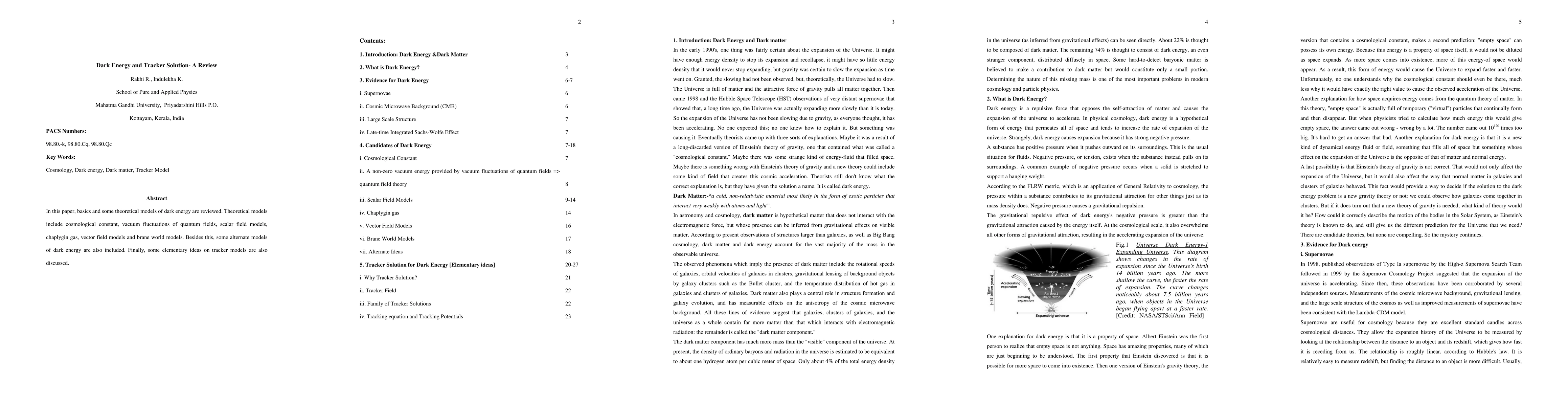 This paper reviews various theoretical models of dark energy, including cosmological constant, vacuum fluctuations, scalar field models, chaplygin gas, vector field models, and brane world models, and also explores alternate models. It concludes with an introduction to tracker models.