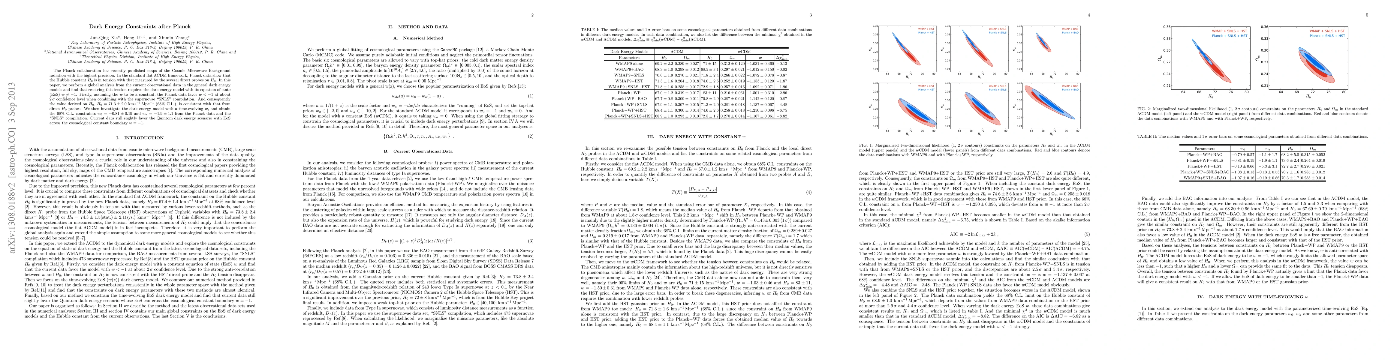 This paper analyzes the constraints on dark energy models using the latest Planck data and finds that the Hubble constant tension can be resolved with dark energy models where the equation of state $w \neq -1$. The study favors a time-evolving dark energy model with $w_0=-0.81\pm0.19$ and $w_a=-1.9\pm1.1$, slightly favoring the Quintom scenario.