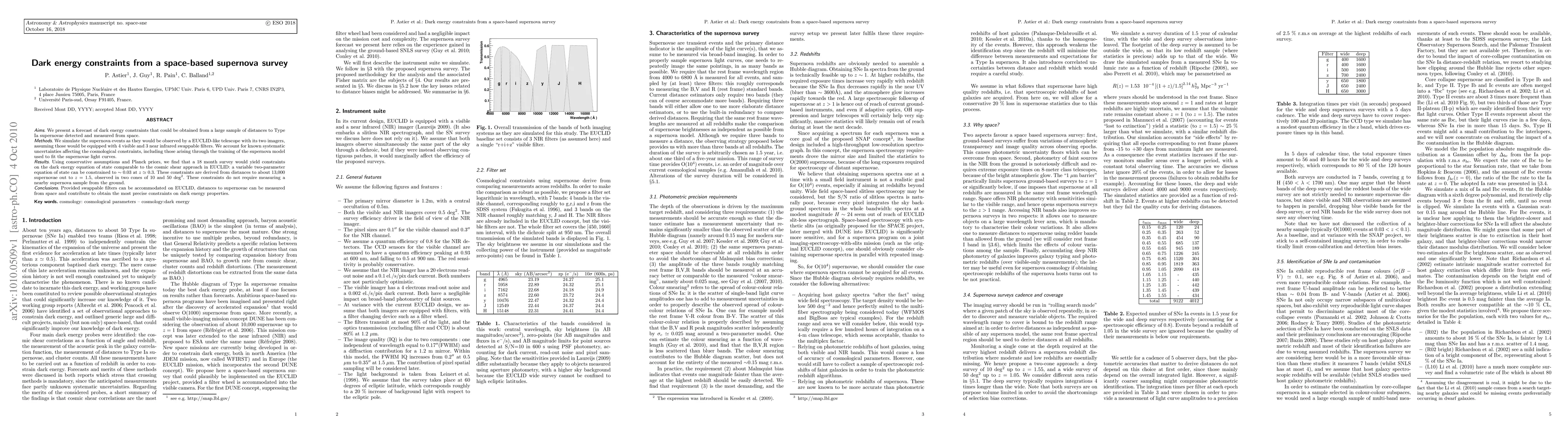 This paper forecasts that a space-based supernova survey using a EUCLID-like telescope could yield dark energy constraints comparable to cosmic shear, achieving a 0.03 precision on the dark energy equation of state by observing ~13,000 Type Ia supernovae up to z=1.5. The survey's success hinges on accommodating swappable filters for multi-wavelength observations.