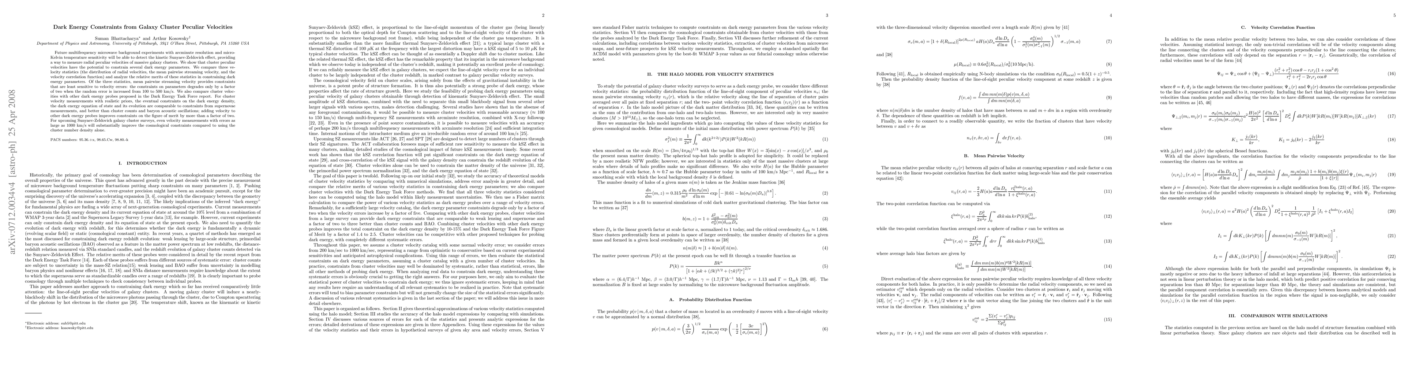 This paper demonstrates that future microwave background experiments can measure galaxy cluster peculiar velocities via the kinetic Sunyaev-Zeldovich effect, providing a new method to constrain dark energy parameters. Among various velocity statistics, the mean pairwise streaming velocity offers the most robust constraints against measurement errors. Combined with other dark energy probes, cluster velocity measurements significantly improve cosmological parameter constraints, rivaling those from supernovae and surpassing other methods.