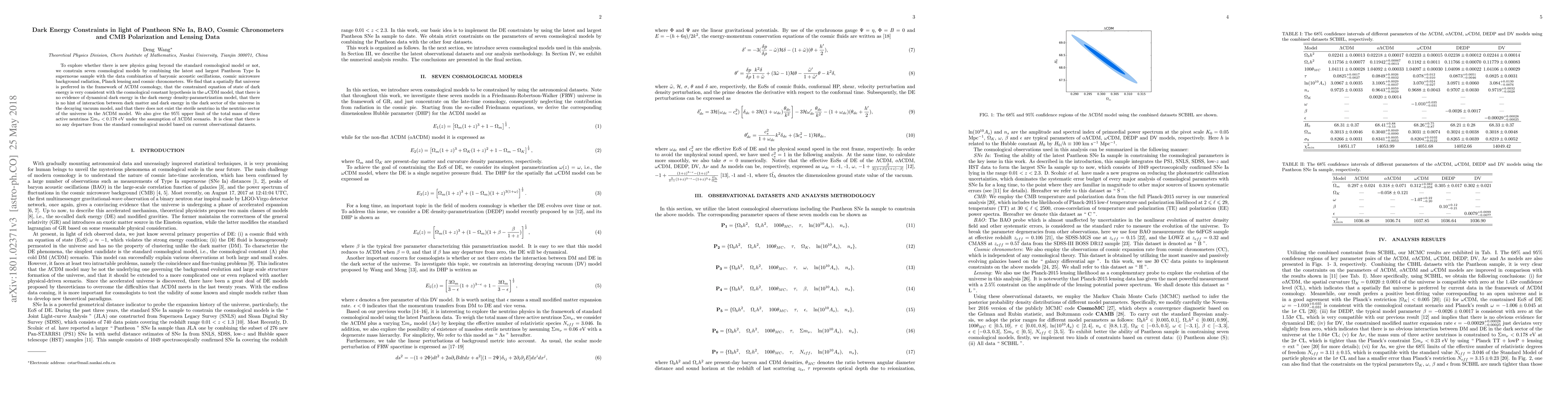 To explore whether there is new physics going beyond the standard cosmological model or not, we constrain seven cosmological models by combining the latest and largest Pantheon Type Ia supernovae sample with the data combination of baryonic acoustic oscillations, cosmic microwave background radiation, Planck lensing and cosmic chronometers. We find that a spatially flat universe is preferred in the framework of $\Lambda$CDM cosmology, that the constrained equation of state of dark energy is very consistent with the cosmological constant hypothesis, that there is no evidence of dynamical dark energy, that there is no hint of interaction between dark matter and dark energy in the dark sector of the universe, and that there does not exist the sterile neutrinos in the neutrino sector of the universe. We also give the 95$\%$ limit of the total mass of three active neutrinos $\Sigma m_\nu<0.178$ eV. It is clear that there is no any departure from the standard cosmological model based on current observational datasets.