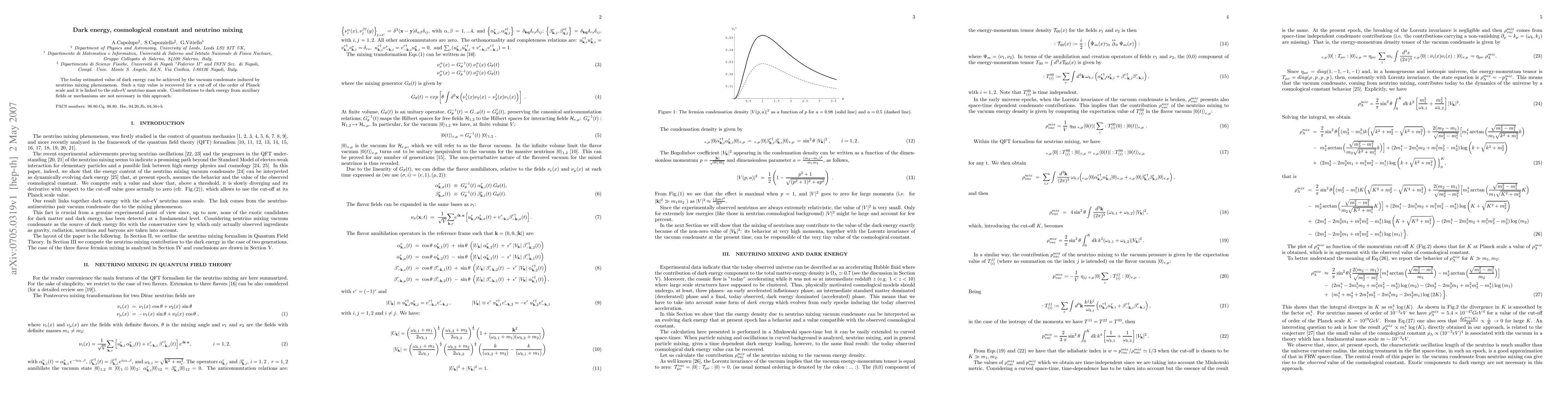 Summary: This paper proposes that the estimated value of dark energy arises from a vacuum condensate induced by neutrino mixing, linked to the sub eV neutrino mass scale, without requiring additional auxiliary fields or mechanisms. The approach connects dark energy to the Planck scale.