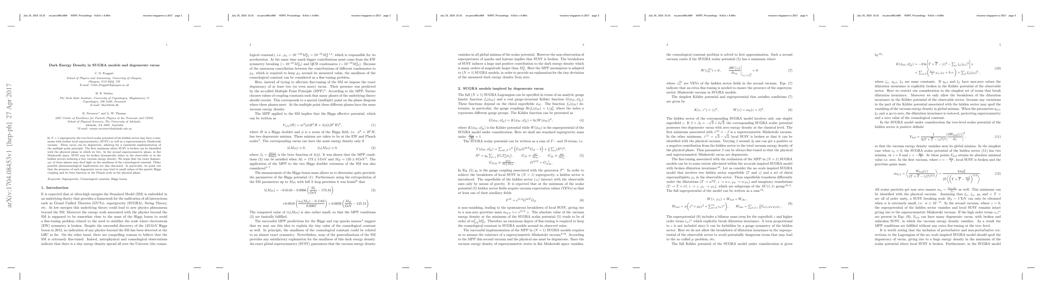 This paper explores N=1 supergravity models where degenerate vacua with broken and unbroken supersymmetry coexist. The study argues that the exact degeneracy between these vacua can help explain the smallness of the cosmological constant and has implications for the quartic Higgs coupling and its beta function at the Planck scale.