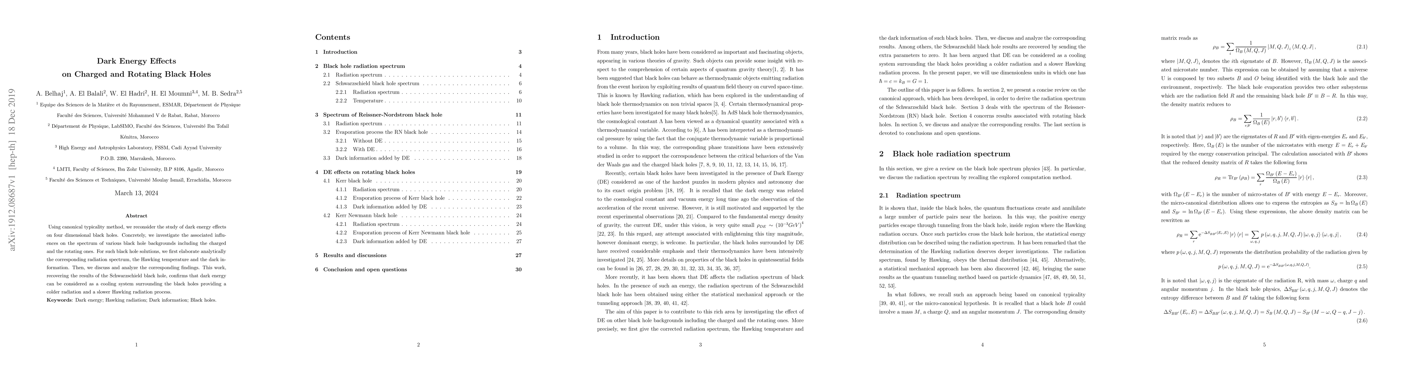 Using canonical typicality method, we reconsider the study of dark energy effects on four dimensional black holes. Concretely, we investigate the associated influences on the spectrum of various black hole backgrounds including the charged and the rotating ones. For such black hole solutions, we first elaborate analytically the corresponding radiation spectrum, the Hawking temperature and the dark information. Then, we discuss and analyze the corresponding findings. This work, recovering the results of the Schwarzschield black hole, confirms that dark energy can be considered as a cooling system surrounding the black holes providing a colder radiation and a slower Hawking radiation process.