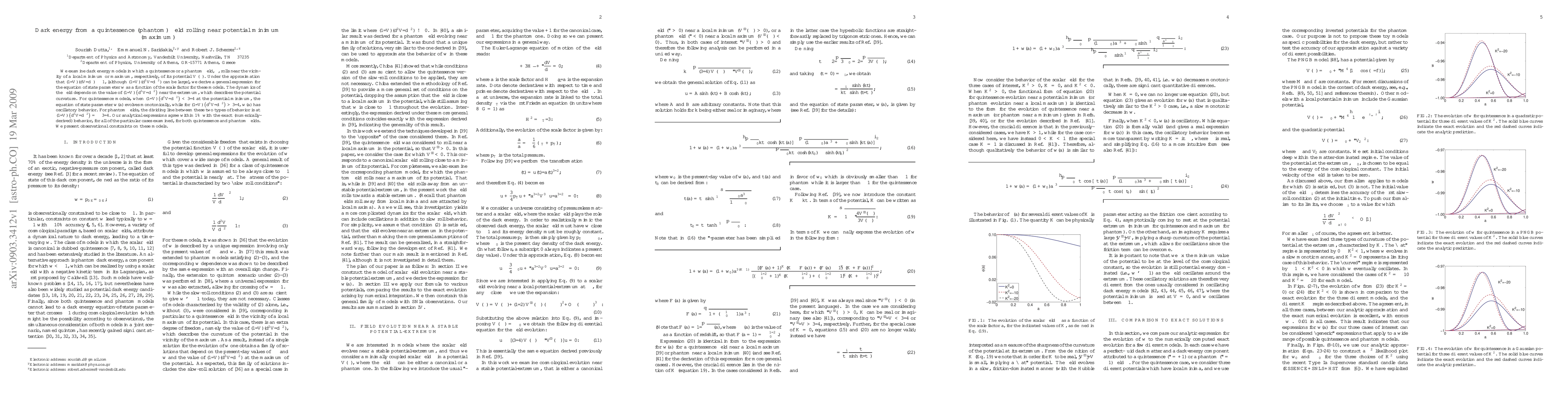 This paper investigates dark energy models involving quintessence and phantom fields near their potential extrema, deriving expressions for the equation of state parameter $w(a)$. Analytical results match numerically derived behaviors within 1%, showing distinct evolution patterns based on the potential curvature. Observational constraints are also presented.