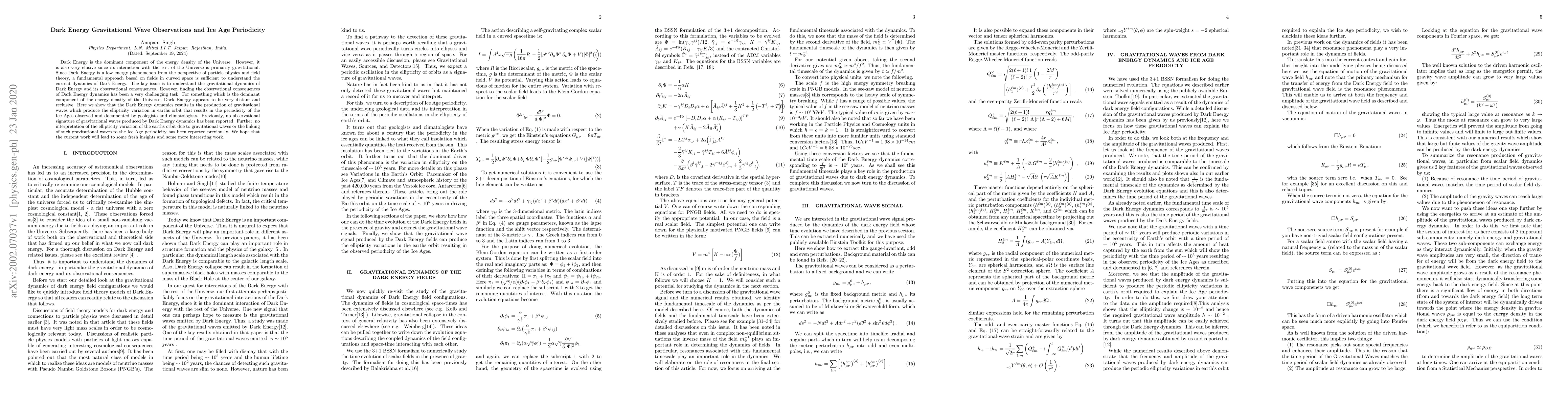Dark Energy is the dominant component of the energy density of the Universe. However, it is also very elusive since its interaction with the rest of the Universe is primarily gravitational.Since Dark Energy is a low energy phenomenon from the perspective of particle physics and field theory, a fundamental approach based on fields in curved space is sufficient to understand the current dynamics of Dark Energy. The key issue is to understand the gravitational dynamics of Dark Energy and its observational consequences. However, finding the observational consequences of Dark Energy dynamics has been a very challenging task. For something which is the dominant component of the energy density of the Universe, Dark Energy appears to be very distant and reclusive. Here we show that the Dark Energy dynamics results in the production of gravitational waves which produce the ellipticity variation in the orbit of earth that results in the periodicity of the Ice Ages observed and documented by geologists and climatologists. Previously, no observational signature of gravitational waves produced by Dark Energy dynamics has been reported. Further, no interpretation of the ellipticity variation of the orbit of earth due to gravitational waves or the linking of such gravitational waves to the Ice Age periodicity has been reported previously. We hope that the current work will lead to some fresh insights and some more interesting work.