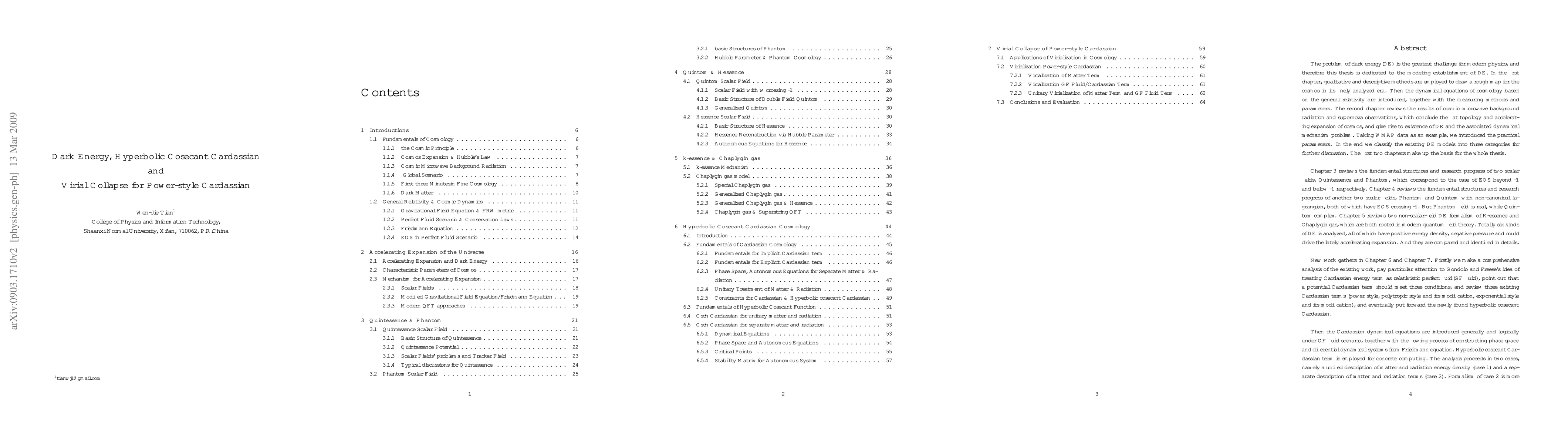 New work gathers in Chapter 6 and Chapter 7. Tthe Cardassian dynamical equations are introduced generally and logically under GF fluid scenario, together with the flowing process of constructing phase space and differential dynamical systems from Friedmann equation. Hyperbolic cosecant Cardassian term is employed for concrete computing. The analysis proceeds in two cases, namely a unified description of matter and radiation energy density (case 1) and a separate description of matter and radiation terms (case 2).Formalism of case 2 is more exact at the expense of more complicatedness, and due to the mathematical symmetry of matter term and radiation term in hyperbolic cosecant function, the differential dynamical equations are considerably simplified. Phase space and dynamical systems for both cases are achieved. When we calculate the critical points for case 2, amazingly interesting behaviors of self-consistency and auto-normalization are exhibited, which is a strong support for the new model,along with a forever positive sound speed. The process of virial collapse in Cardassian cosmos is analyzed. Power-style Cardassian term is employed for its simplicity.Calculation declares that virial collapse of matter alone isforbidden. Yet Cardassian has excellent ability for virial collapse,after the virial collapse ending up with a stable sphere, the ratio of the ultimate radius to the original radius depends on the adjustable parameters in Cardassian term. And, the mixture of GF fluid and matter could conduct virial collapse, the ratio of the ultimate radius to the original radius depends on the adjustable parameters in Cardassian term, too. No singularity is generated.