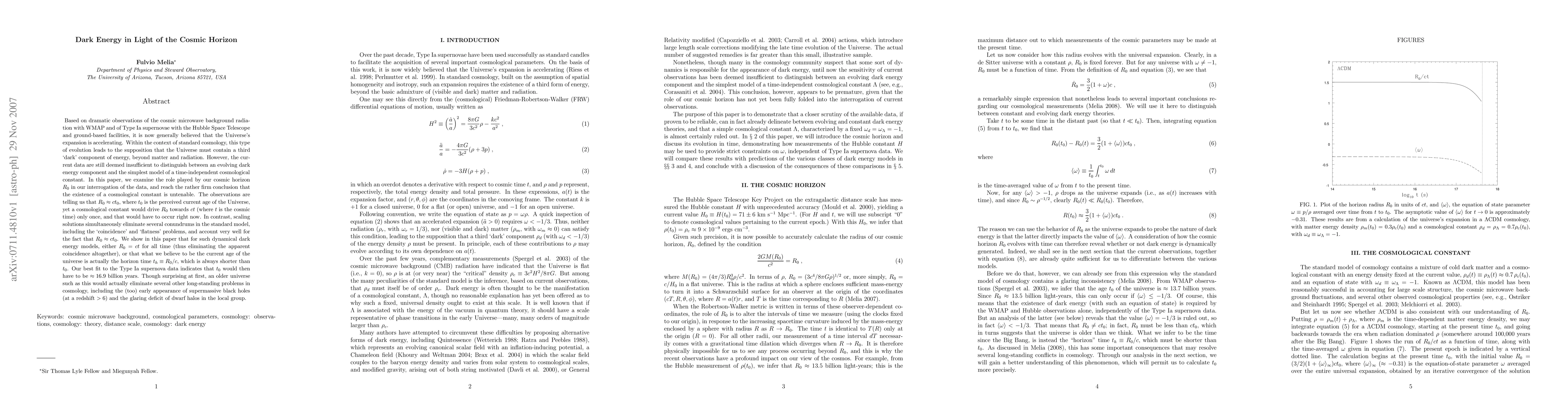 Based on dramatic observations of the CMB with WMAP and of Type Ia supernovae with the Hubble Space Telescope and ground-based facilities, it is now generally believed that the Universe's expansion is accelerating. Within the context of standard cosmology, the Universe must therefore contain a third `dark' component of energy, beyond matter and radiation. However, the current data are still deemed insufficient to distinguish between an evolving dark energy component and the simplest model of a time-independent cosmological constant. In this paper, we examine the role played by our cosmic horizon R0 in our interrogation of the data, and reach the rather firm conclusion that the existence of a cosmological constant is untenable. The observations are telling us that R0=c t0, where t0 is the perceived current age of the Universe, yet a cosmological constant would drive R0 towards ct (where t is the cosmic time) only once, and that would have to occur right now. In contrast, scaling solutions simultaneously eliminate several conundrums in the standard model, including the `coincidence' and `flatness' problems, and account very well for the fact that R0=c t0. We show here that for such dynamical dark energy models, either R0=ct for all time (thus eliminating the apparent coincidence altogether), or that what we believe to be the current age of the universe is actually the horizon time th=R0/c, which is always shorter than t0. Our best fit to the Type Ia supernova data indicates that t0 would then have to be ~16.9 billion years. Though surprising at first, an older universe such as this would actually eliminate several other long-standing problems in cosmology, including the (too) early appearance of supermassive black holes (at a redshift > 6) and the glaring deficit of dwarf halos in the local group.