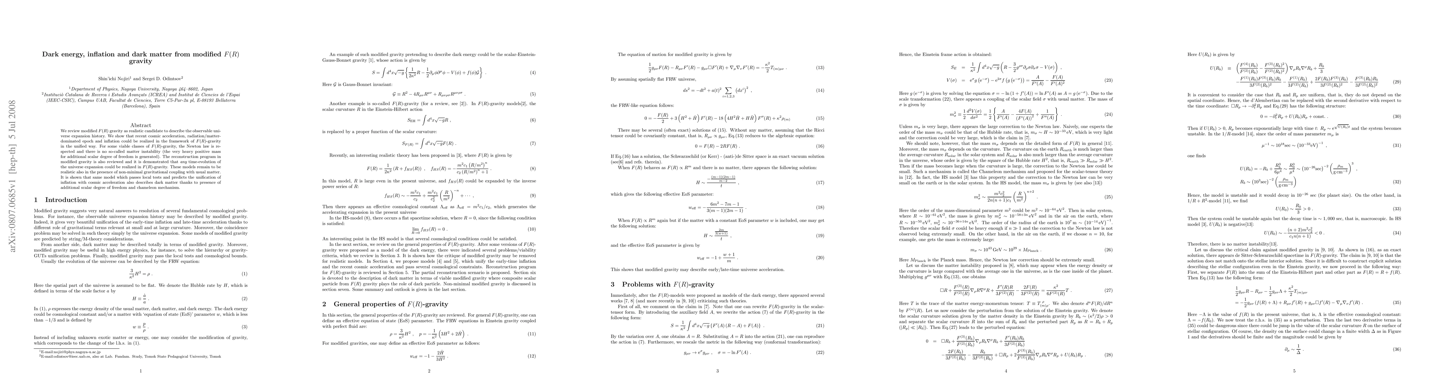 This paper reviews modified $F(R)$ gravity as a potential framework to explain cosmic inflation, dark energy, and the transition from radiation/matter domination, while ensuring the validity of Newton's laws and avoiding matter instability. It demonstrates that these models can describe the universe's entire expansion history and also account for dark matter through an additional scalar degree of freedom and the chameleon mechanism.