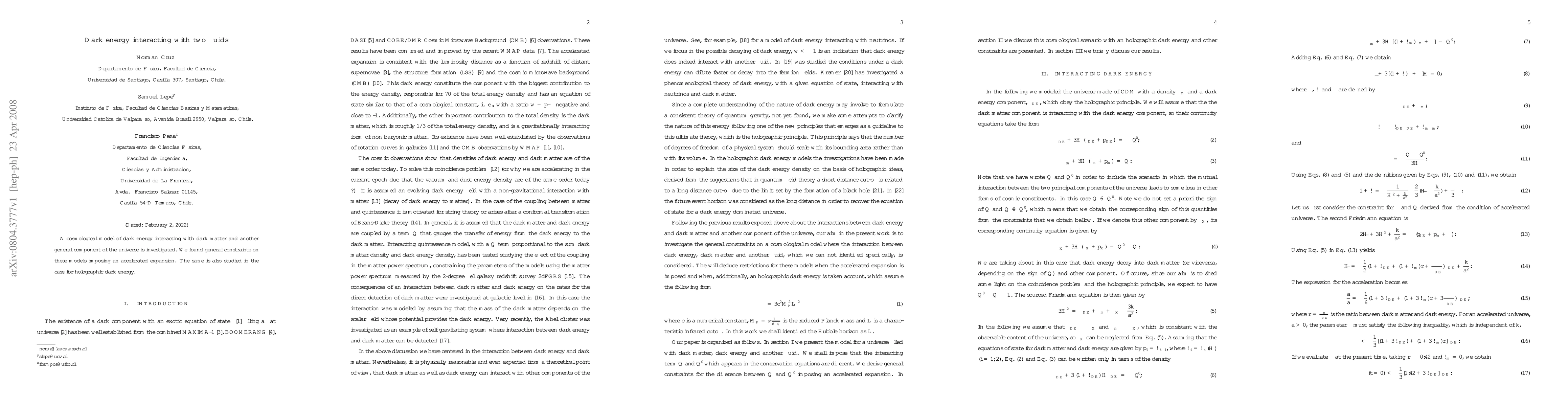 A cosmological model of dark energy interacting with dark matter and another general component of the universe is investigated. We found general constraints on these models imposing an accelerated expansion. The same is also studied in the case for holographic dark energy.