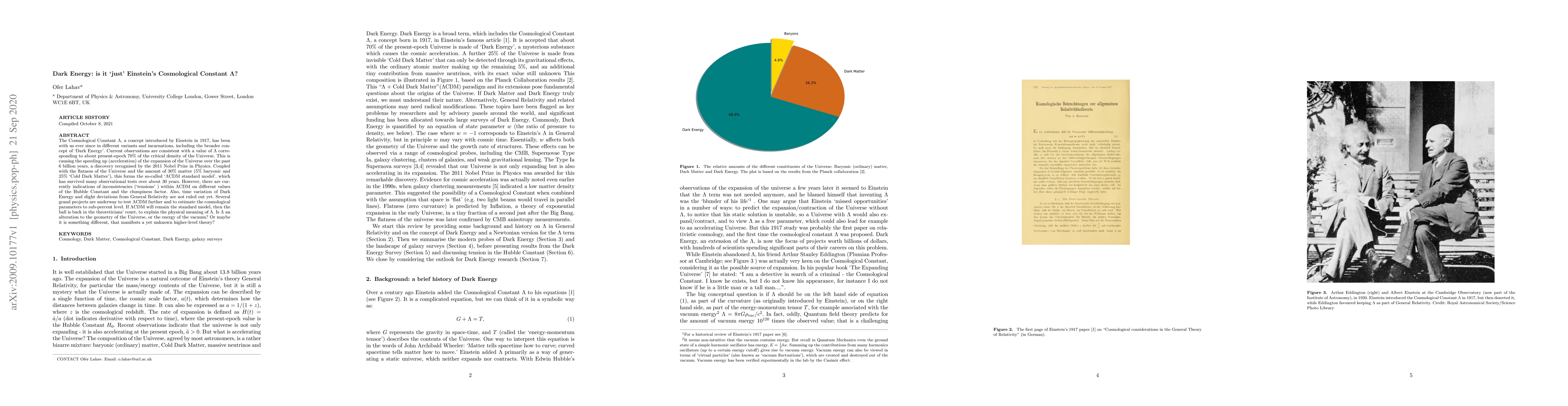 The Cosmological Constant Lambda, a concept introduced by Einstein in 1917, has been with us ever since in different variants and incarnations, including the broader concept of Dark Energy. Current observations are consistent with a value of Lambda corresponding to about present-epoch 70% of the critical density of the Universe. This is causing the speeding up (acceleration) of the expansion of the Universe over the past 6 billion years, a discovery recognised by the 2011 Nobel Prize in Physics. Coupled with the flatness of the Universe and the amount of 30% matter (5% baryonic and 25% Cold Dark Matter), this forms the so-called Lambda-CDM standard model, which has survived many observational tests over about 30 years. However, there are currently indications of inconsistencies (`tensions' ) within Lambda-CDM on different values of the Hubble Constant and the clumpiness factor. Also, time variation of Dark Energy and slight deviations from General Relativity are not ruled out yet. Several grand projects are underway to test Lambda-CDM further and to estimate the cosmological parameters to sub-percent level. If Lambda-CDM will remain the standard model, then the ball is back in the theoreticians' court, to explain the physical meaning of Lambda. Is Lambda an alteration to the geometry of the Universe, or the energy of the vacuum? Or maybe it is something different, that manifests a yet unknown higher-level theory?