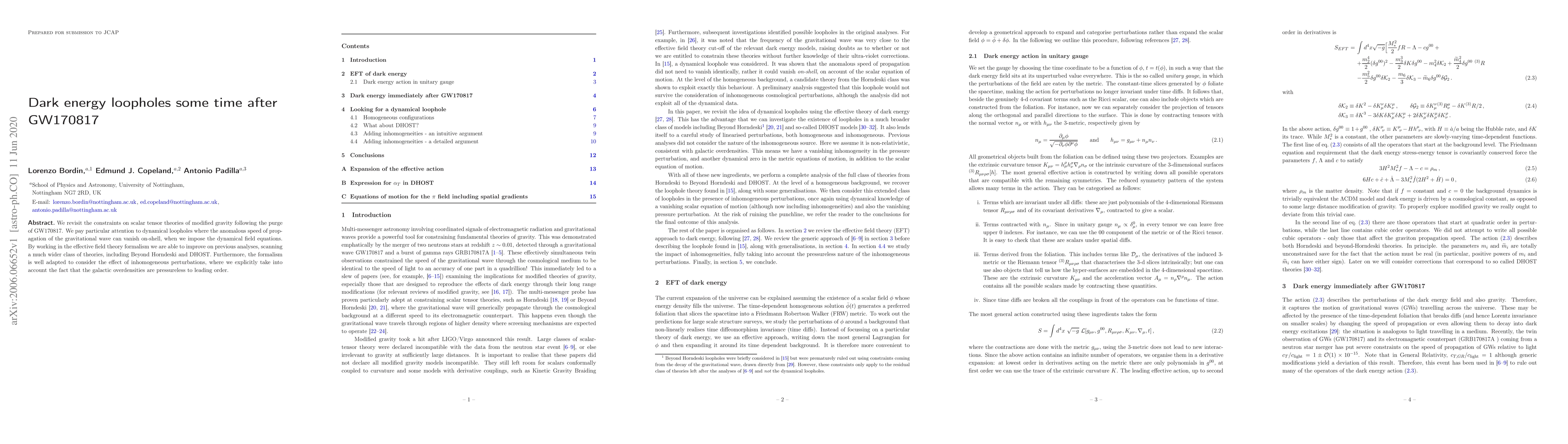 This paper revisits constraints on scalar tensor theories of modified gravity post-GW170817, focusing on dynamical loopholes where gravitational wave speed anomalies vanish on-shell. By employing effective field theory, the authors explore a broader range of theories beyond the Horndeski framework, including DHOST, and consider the impact of inhomogeneous perturbations.