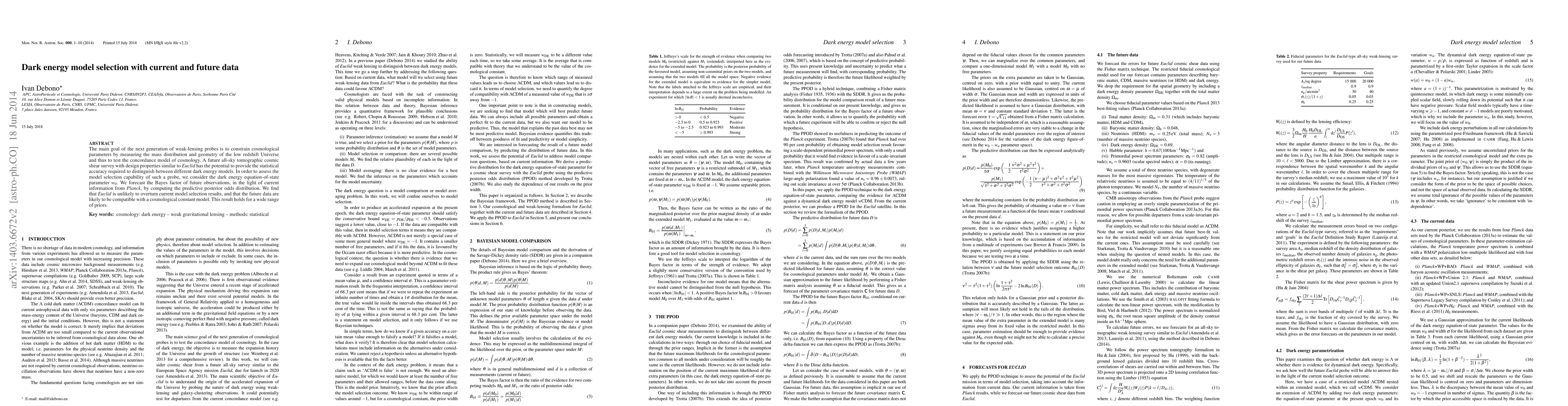 The main goal of the next generation of weak lensing probes is to constrain cosmological parameters by measuring the mass distribution and geometry of the low redshift Universe and thus to test the concordance model of cosmology. A future all-sky tomographic cosmic shear survey with design properties similar to Euclid has the potential to provide the statistical accuracy required to distinguish between different dark energy models. In order to assess the model selection capability of such a probe, we consider the dark energy equation-of-state parameter $w_0$. We forecast the Bayes factor of future observations, in the light of current information from Planck by computing the predictive posterior odds distribution. We find that Euclid is unlikely to overturn current model selection results, and that the future data are likely to be compatible with a cosmological constant model. This result holds for a wide range of priors.