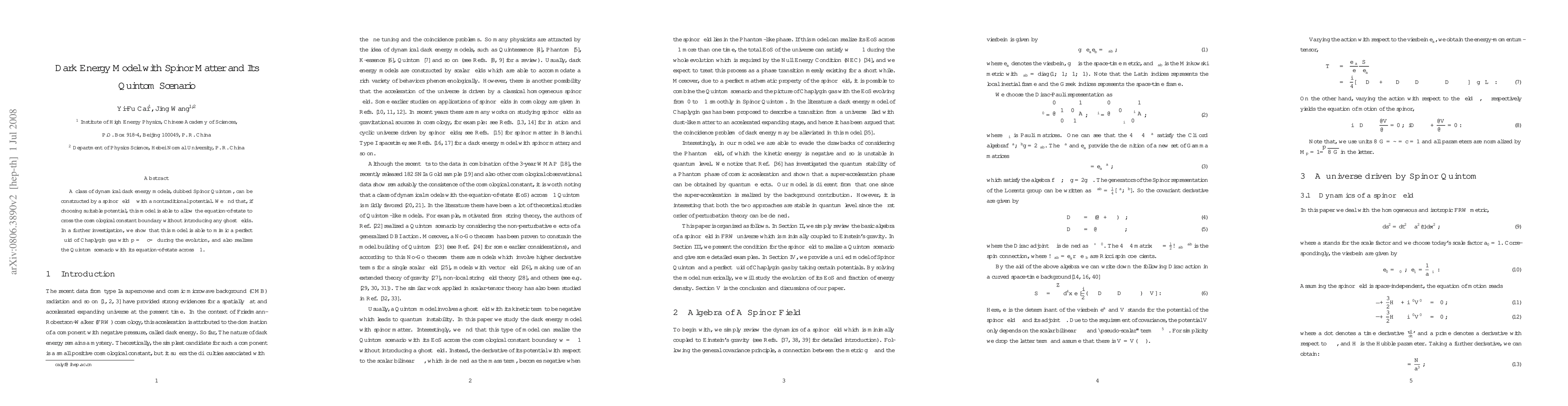 A class of dynamical dark energy models, dubbed Spinor Quintom, can be constructed by a spinor field $\psi$ with a nontraditional potential. We find that, if choosing suitable potential, this model is able to allow the equation-of-state to cross the cosmological constant boundary without introducing any ghost fields. In a further investigation, we show that this model is able to mimic a perfect fluid of Chaplygin gas with $p=-c/\rho$ during the evolution, and also realizes the Quintom scenario with its equation-of-state across -1.
