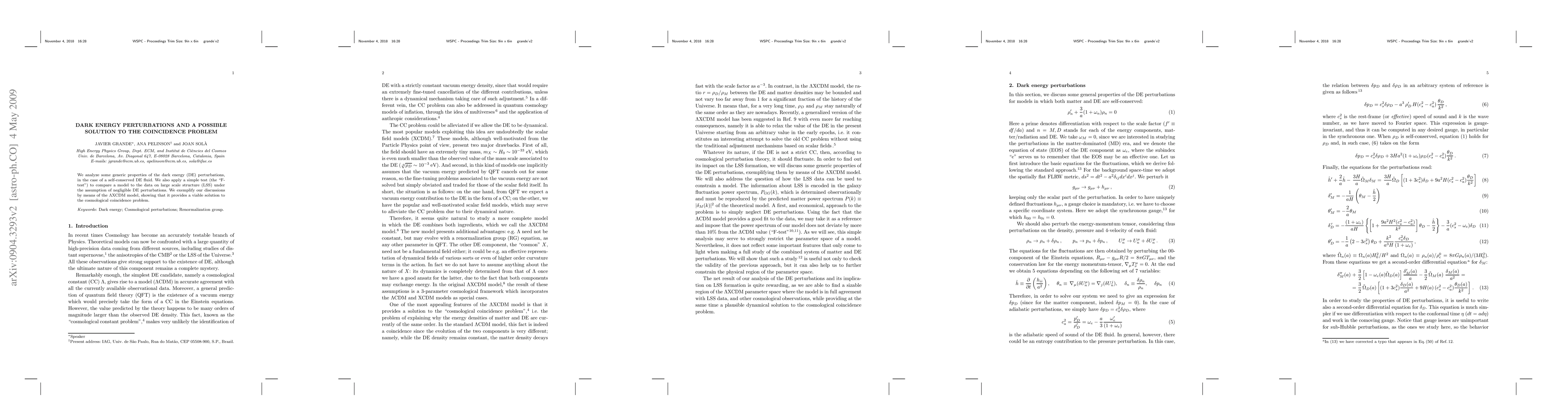 This paper investigates dark energy perturbations in a self-conserved DE fluid and proposes a solution to the cosmological coincidence problem using the LXCDM model, demonstrating that it aligns well with large scale structure data via the "F-test."