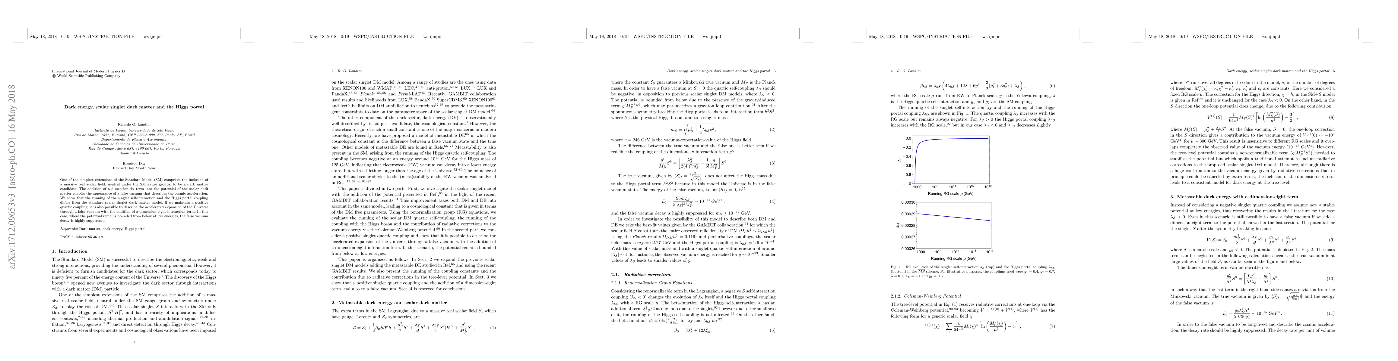This paper explores a simple extension of the Standard Model by adding a scalar field as dark matter and a dimension-six term to its potential, which allows for a false vacuum explaining cosmic acceleration. It also investigates the implications of a dimension-eight interaction term, showing that it maintains a bounded potential and suppresses false vacuum decay.