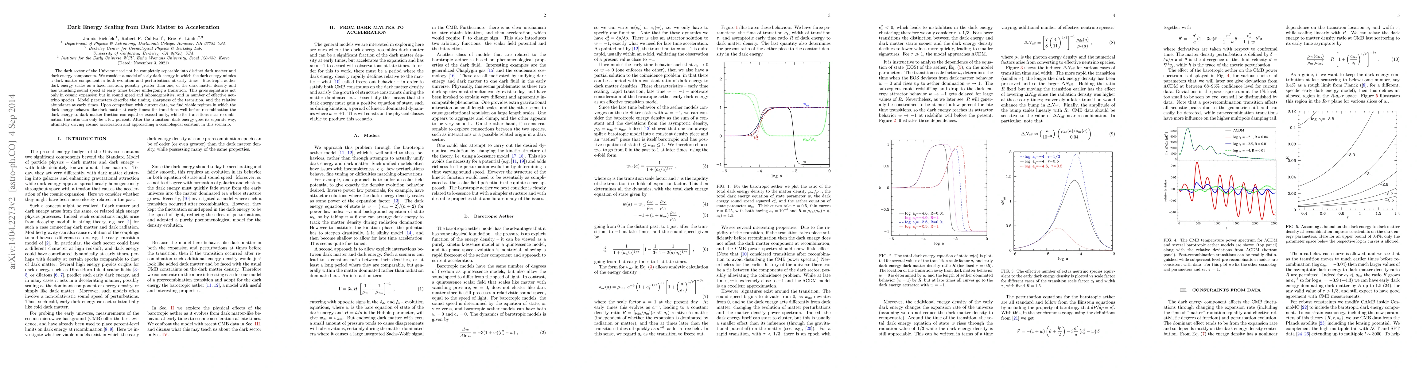 This paper proposes a model where dark energy initially mimics dark matter, scaling proportionally to it before transitioning to drive cosmic acceleration. The model's parameters determine the timing and nature of this transition, with implications for cosmic expansion, sound speed, and the number of effective neutrino species.