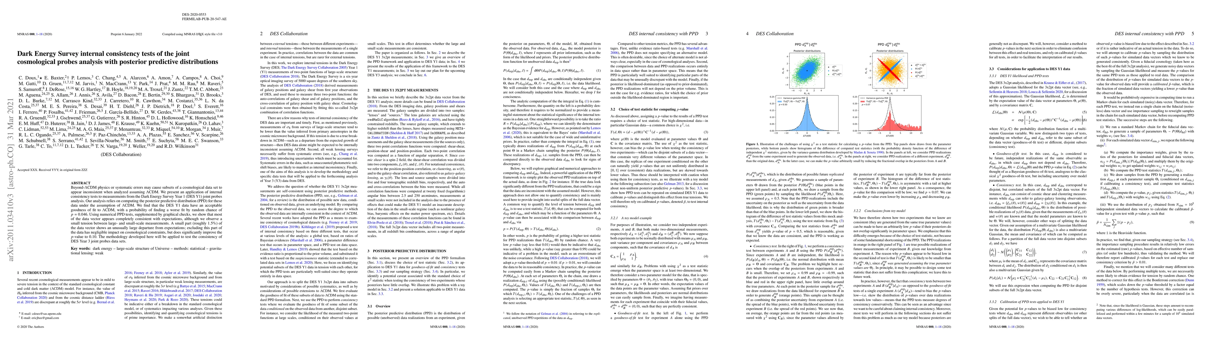 Beyond-$\Lambda$CDM physics or systematic errors may cause subsets of a cosmological data set to appear inconsistent when analyzed assuming $\Lambda$CDM. We present an application of internal consistency tests to measurements from the Dark Energy Survey Year 1 (DES Y1) joint probes analysis. Our analysis relies on computing the posterior predictive distribution (PPD) for these data under the assumption of $\Lambda$CDM. We find that the DES Y1 data have an acceptable goodness of fit to $\Lambda$CDM, with a probability of finding a worse fit by random chance of ${p = 0.046}$. Using numerical PPD tests, supplemented by graphical checks, we show that most of the data vector appears completely consistent with expectations, although we observe a small tension between large- and small-scale measurements. A small part (roughly 1.5%) of the data vector shows an unusually large departure from expectations; excluding this part of the data has negligible impact on cosmological constraints, but does significantly improve the $p$-value to 0.10. The methodology developed here will be applied to test the consistency of DES Year 3 joint probes data sets.