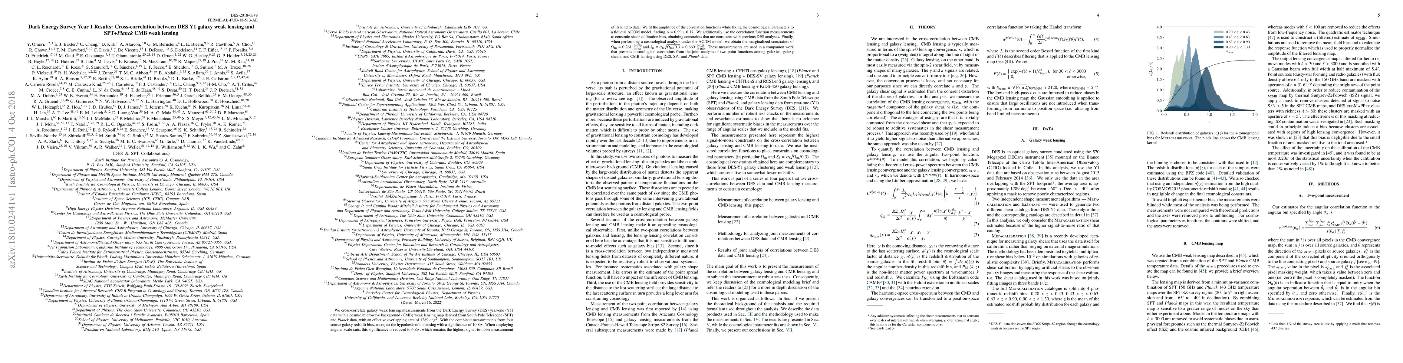 The Dark Energy Survey (DES) Y1 weak lensing data is cross-correlated with a CMB lensing map from SPT and Planck data, yielding a strong $10.8\sigma$ signal of lensing. The analysis provides constraints on cosmological parameters, including $\Omega_{\rm m}=0.261^{+0.070}_{-0.051}$ and $S_{8}=0.660^{+0.085}_{-0.100}$, supporting the $\Lambda$CDM model.