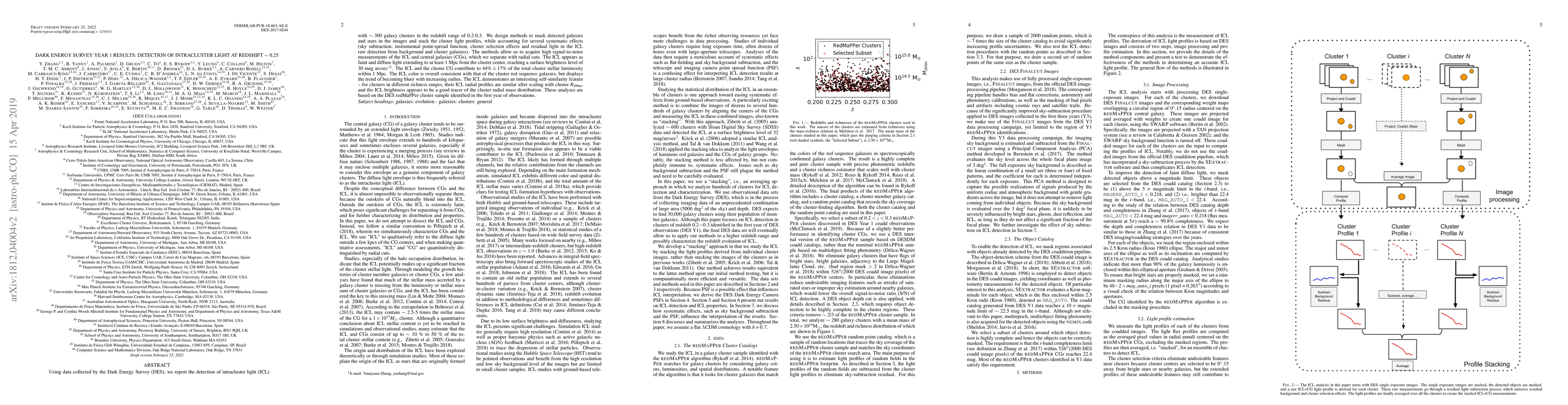 The Dark Energy Survey (DES) Year 1 results report the detection of intracluster light (ICL) in approximately 300 galaxy clusters at redshifts around 0.25. The study reveals that ICL constitutes about 44% of the total cluster stellar luminosity within 1 Mpc, showing a self-similarity feature across different cluster richness levels.
