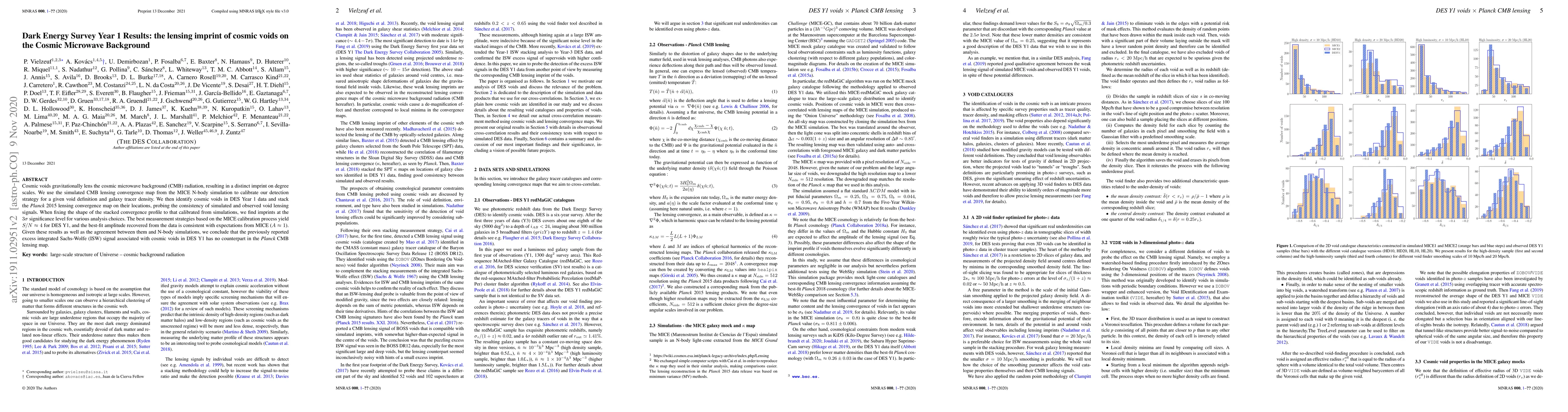 The Dark Energy Survey Year 1 data reveals a $3{\sigma}$ lensing imprint of cosmic voids on the Cosmic Microwave Background (CMB), consistent with MICE N-body simulation predictions. The analysis shows no excess integrated Sachs-Wolfe signal in the Planck CMB lensing map, corroborating the void lensing results.