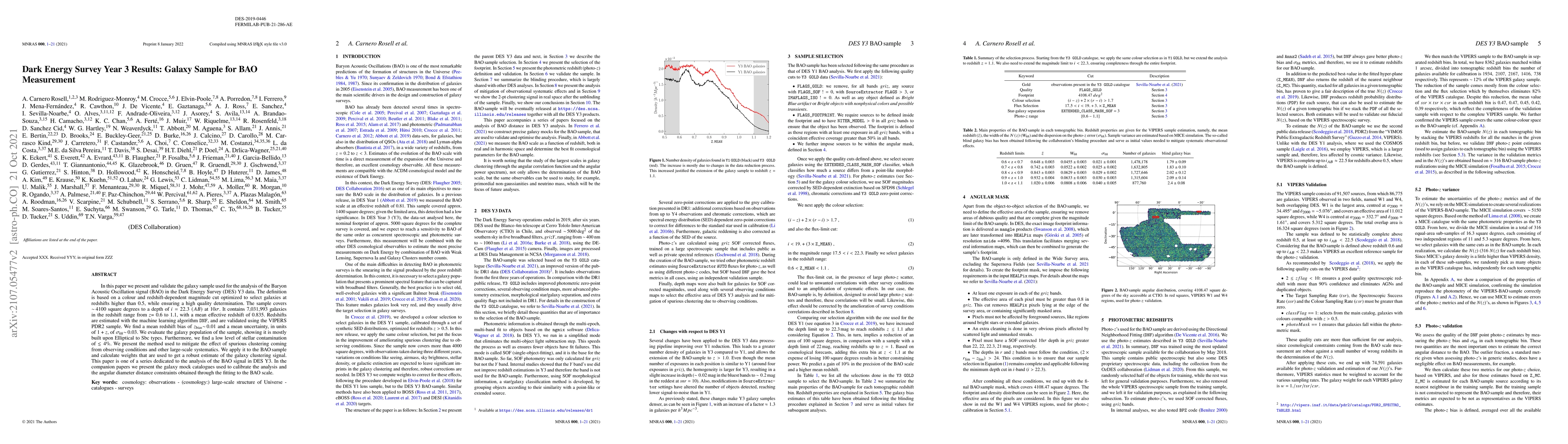 The Dark Energy Survey Year 3 has released a validated galaxy sample for measuring Baryon Acoustic Oscillations, containing over 7 million galaxies with high precision photometric redshifts, enabling accurate analysis of the universe's expansion.