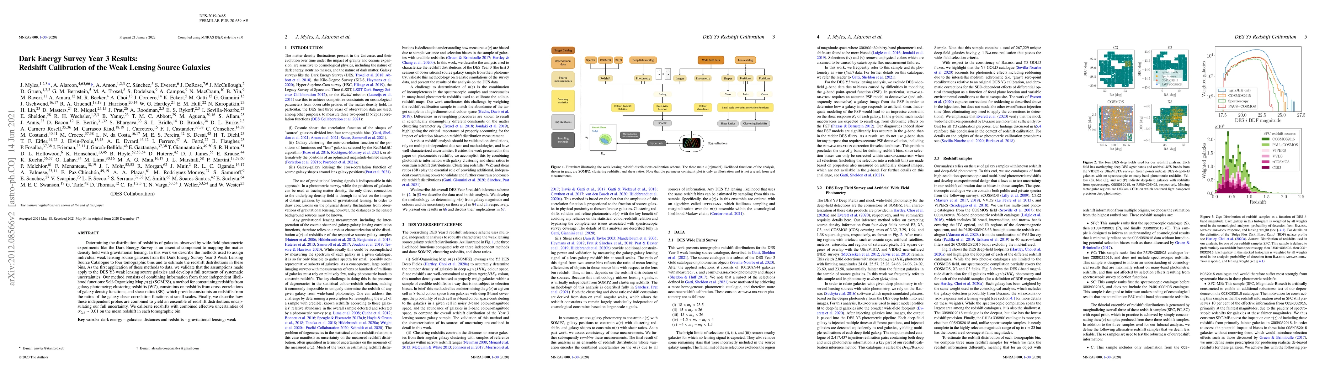 The Dark Energy Survey Year 3 results present methods for assigning weak lensing source galaxies to tomographic bins and estimating their redshift distributions, combining three independent likelihood functions: SOMPZ, WZ, and SR. The calibrated redshifts achieve effective uncertainties of $\sigma_{\langle z \rangle}\sim 0.01$ per bin, validating the assumptions and addressing systematic uncertainties.