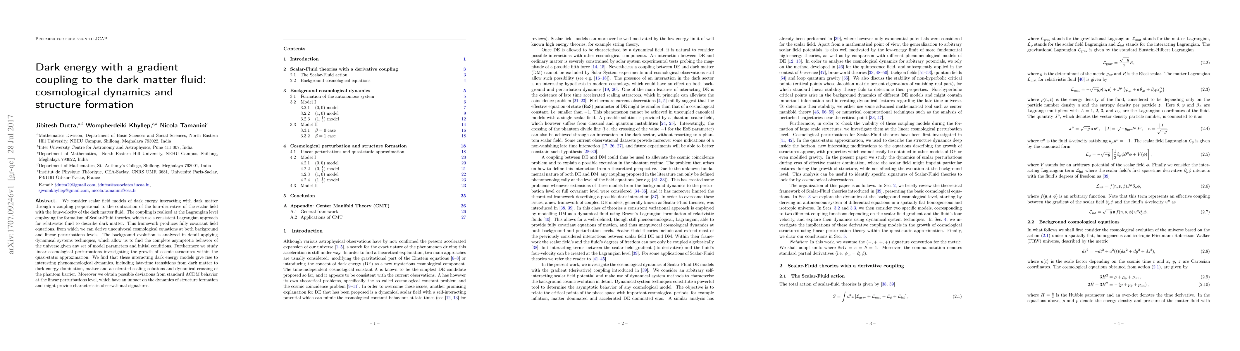 This paper explores scalar field models of dark energy interacting with dark matter via a gradient coupling, employing Scalar-Fluid theories to derive cosmological equations. It finds complex dynamics including transitions between dark matter and dark energy dominance, and potential deviations from standard $\Lambda$CDM that may affect structure formation and provide observational signatures.