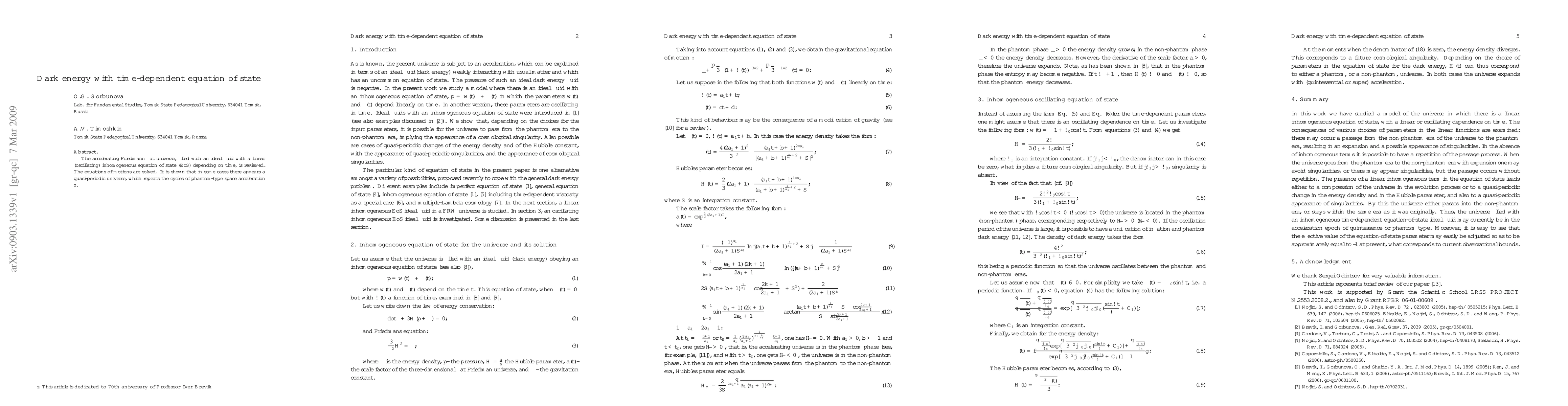 The accelerating Friedmann flat universe, filled with an ideal fluid with a linear (oscillating) inhomogeneous equation of state (EoS) depending on time, is reviewed. The equations of motions are solved. It is shown that in some cases there appears a quasi-periodic universe, which repeats the cycles of phantom-type space acceleration.