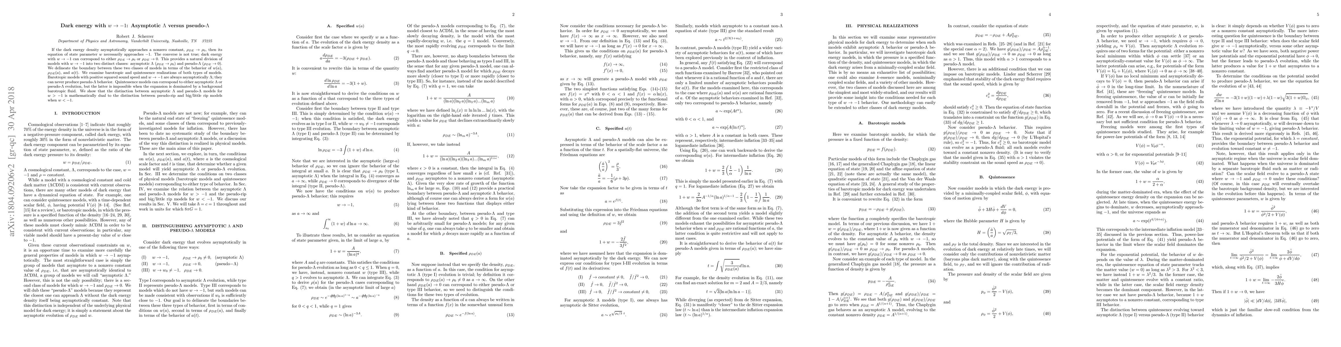 Researchers categorize dark energy models with $w ightarrow -1$ into asymptotic $eta$ (approaching a nonzero constant) and pseudo-$eta$, distinguishing between two classes of models based on their behavior.