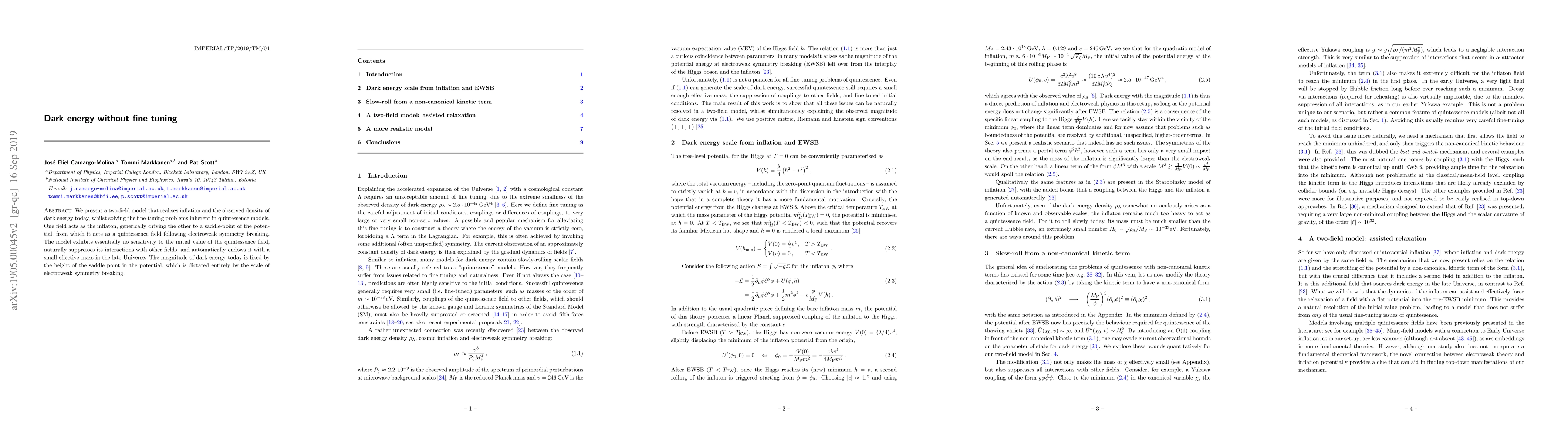 We present a two-field model that realises inflation and the observed density of dark energy today, whilst solving the fine-tuning problems inherent in quintessence models. One field acts as the inflaton, generically driving the other to a saddle-point of the potential, from which it acts as a quintessence field following electroweak symmetry breaking. The model exhibits essentially no sensitivity to the initial value of the quintessence field, naturally suppresses its interactions with other fields, and automatically endows it with a small effective mass in the late Universe. The magnitude of dark energy today is fixed by the height of the saddle point in the potential, which is dictated entirely by the scale of electroweak symmetry breaking.