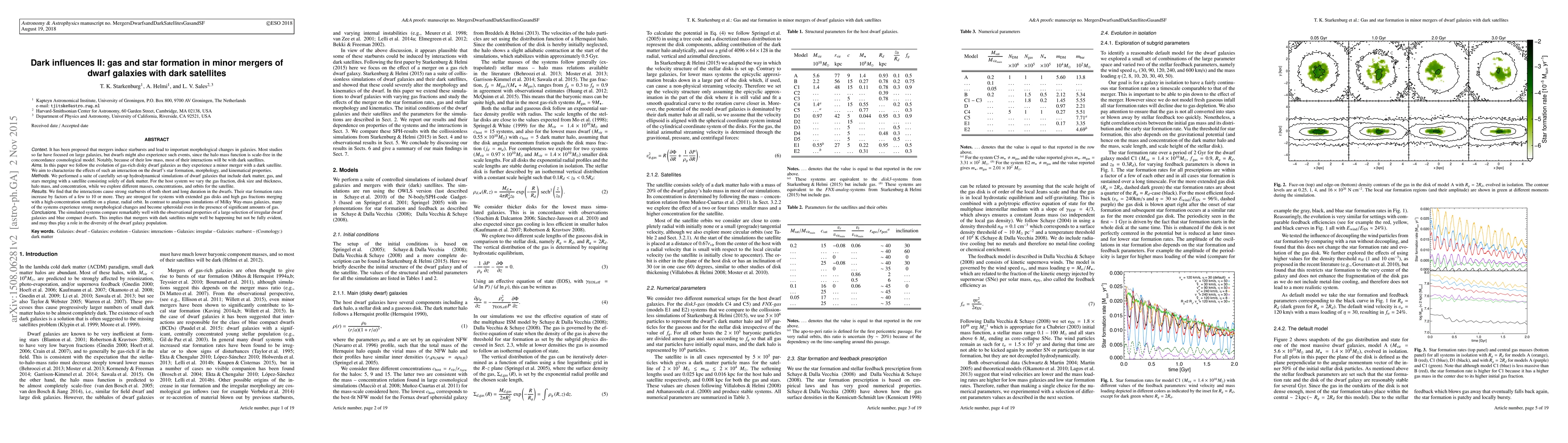 This paper investigates the impact of minor mergers between gas-rich dwarf galaxies and dark satellites on star formation, morphology, and kinematics. Simulations reveal significant starbursts and morphological changes, with star formation rates increasing by factors of a few to 10, suggesting that such dark satellite mergers may contribute to the diversity of dwarf galaxies.