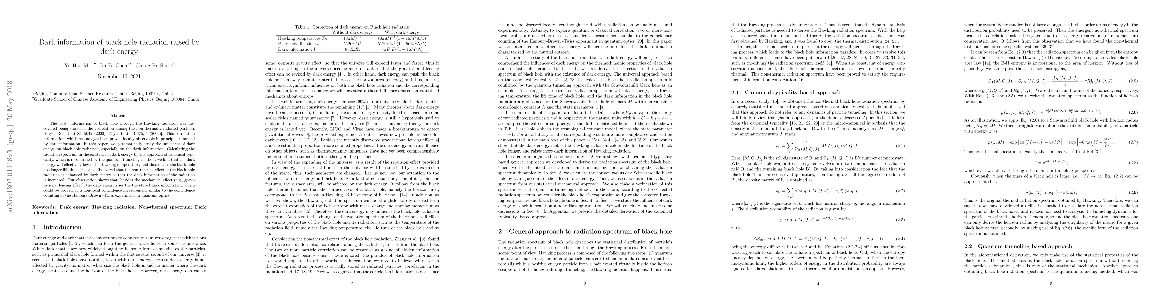 This paper investigates how dark energy influences black hole radiation, particularly the "dark information" stored in non-thermal correlations of Hawking radiation particles. It finds that dark energy lowers the Hawking temperature, extends black hole lifetime, and enhances the non-thermal effects, thereby increasing the dark information, which could be detected via non-local measurements akin to quantum optics experiments.