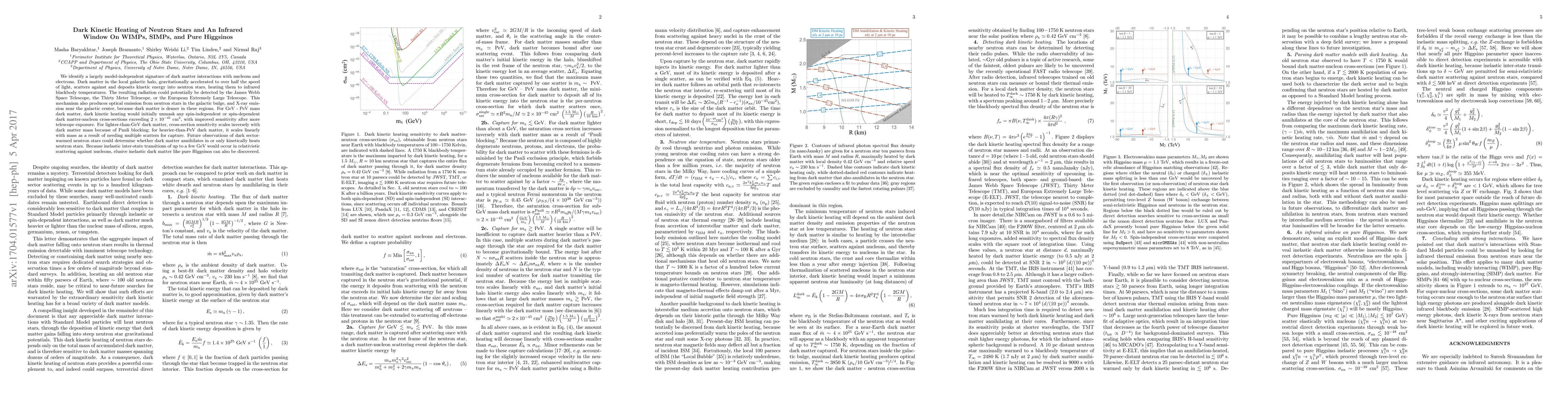 We identify a largely model-independent signature of dark matter interactions with nucleons and electrons. Dark matter in the local galactic halo, gravitationally accelerated to over half the speed of light, scatters against and deposits kinetic energy into neutron stars, heating them to infrared blackbody temperatures. The resulting radiation could potentially be detected by the James Webb Space Telescope, the Thirty Meter Telescope, or the European Extremely Large Telescope. This mechanism also produces optical emission from neutron stars in the galactic bulge, and X-ray emission near the galactic center, because dark matter is denser in these regions. For GeV - PeV mass dark matter, dark kinetic heating would initially unmask any spin-independent or spin-dependent dark matter-nucleon cross-sections exceeding $2 \times 10^{-45}$ cm$^2$, with improved sensitivity after more telescope exposure. For lighter-than-GeV dark matter, cross-section sensitivity scales inversely with dark matter mass because of Pauli blocking; for heavier-than-PeV dark matter, it scales linearly with mass as a result of needing multiple scatters for capture. Future observations of dark sector-warmed neutron stars could determine whether dark matter annihilates in or only kinetically heats neutron stars. Because inelastic inter-state transitions of up to a few GeV would occur in relativistic scattering against nucleons, elusive inelastic dark matter like pure Higgsinos can also be discovered.