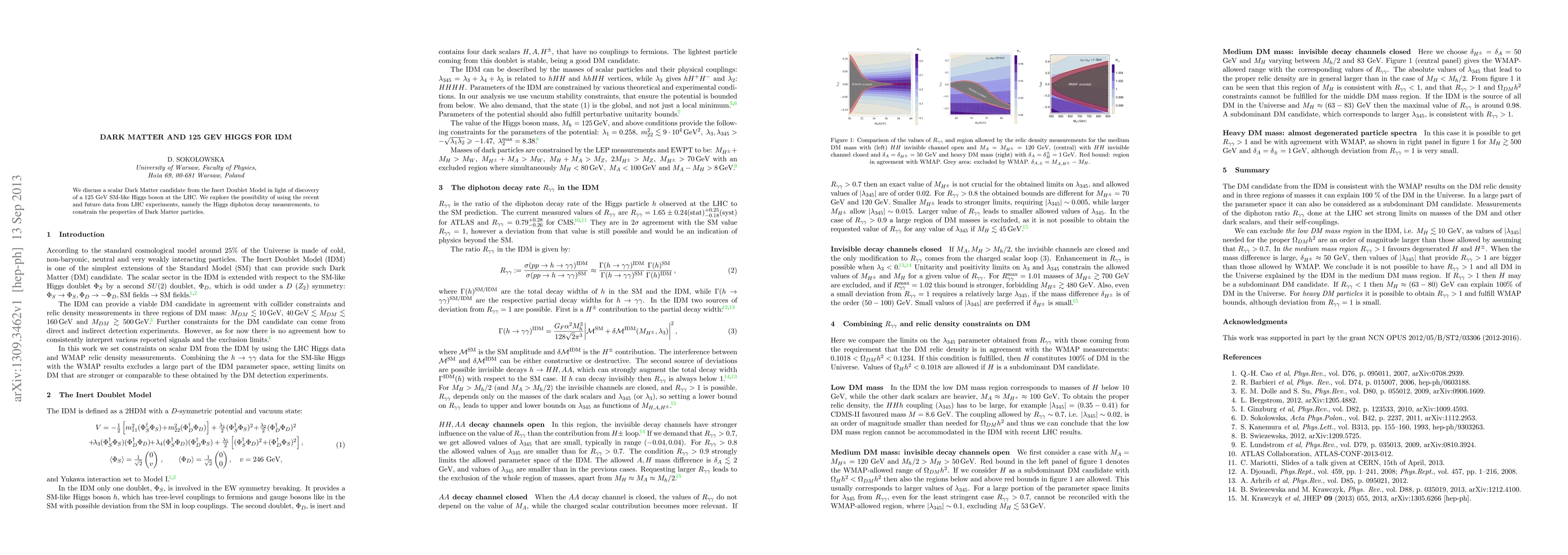 We discuss a scalar Dark Matter candidate from the Inert Doublet Model in light of discovery of a 125 GeV SM-like Higgs boson at the LHC. We explore the possibility of using the recent and future data from LHC experiments, namely the Higgs diphoton decay measurements, to constrain the properties of Dark Matter particles.