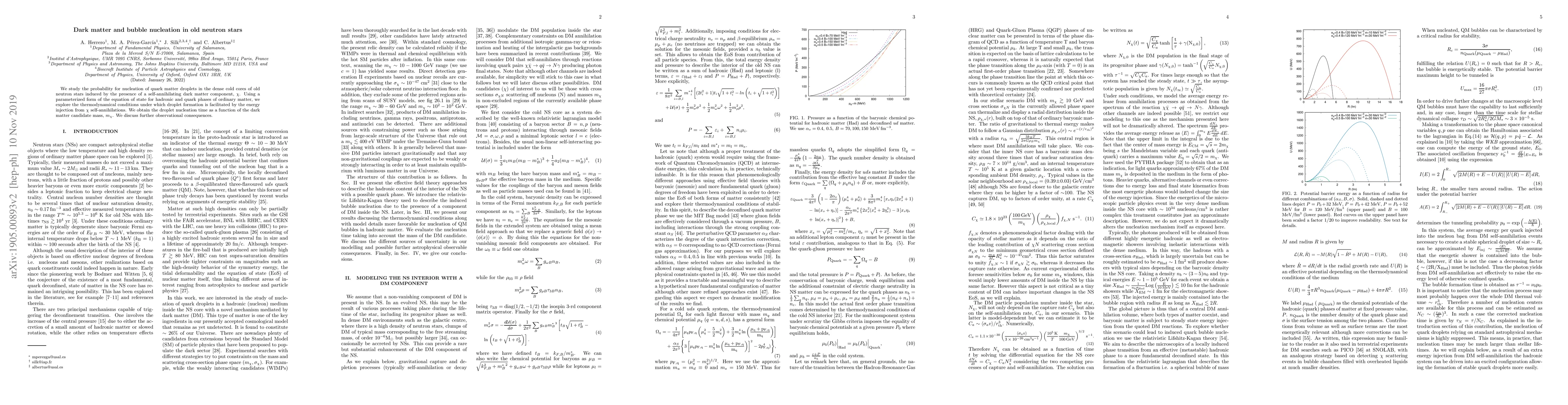 This research investigates the possibility of quark matter droplet formation in old neutron stars due to dark matter self-annihilation. It derives droplet nucleation time based on dark matter candidate mass and discusses potential observational impacts.