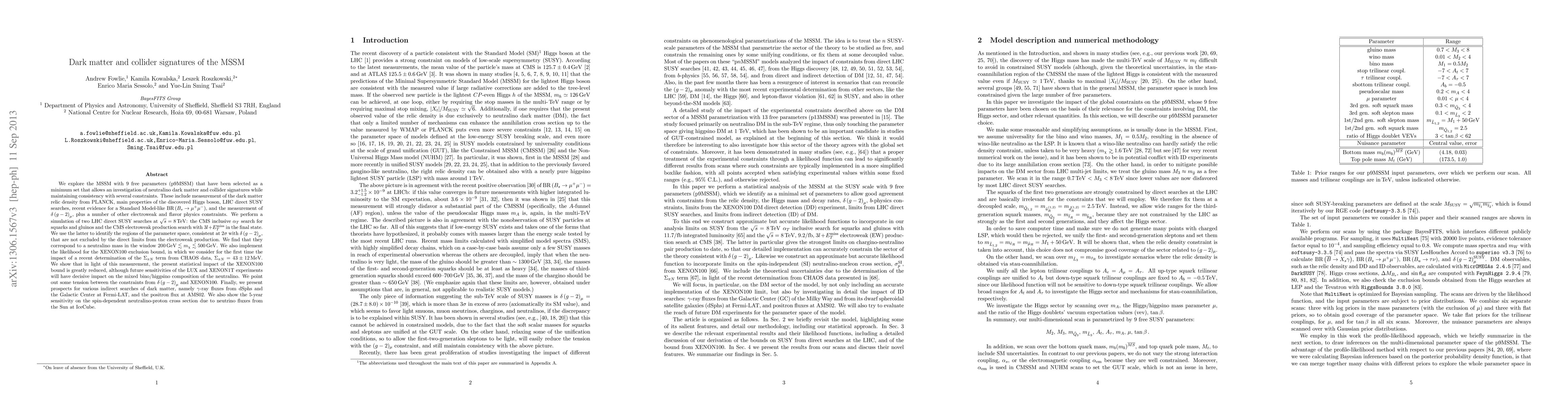 We explore the MSSM with 9 free parameters (p9MSSM) that have been selected