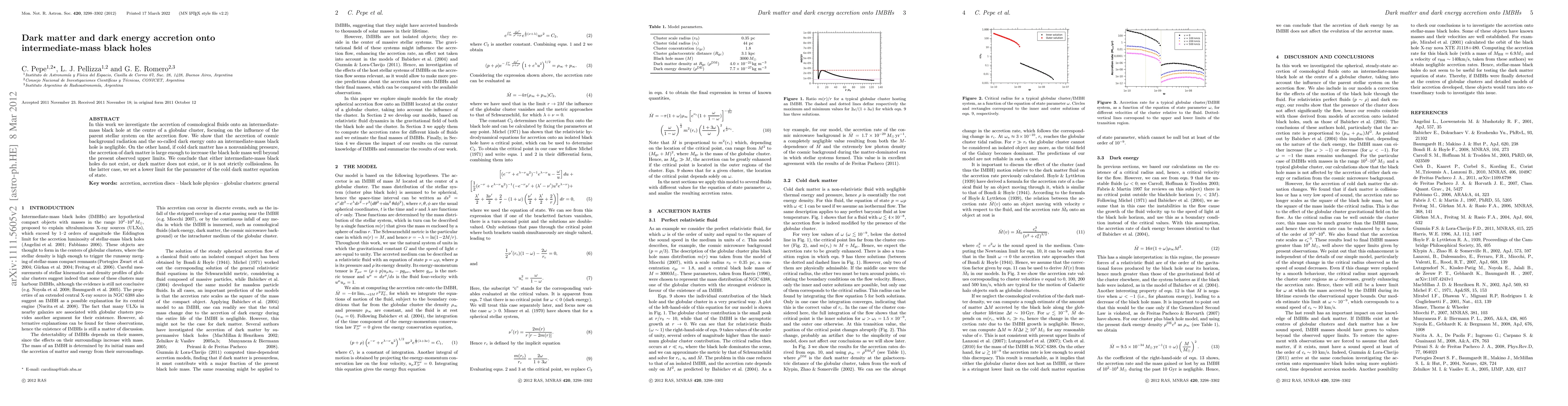 This paper examines the accretion of dark matter and dark energy onto an intermediate-mass black hole in a globular cluster, finding negligible accretion of these cosmological fluids. It suggests that if dark matter has a nonvanishing pressure, its accretion could significantly increase the black hole's mass, implying either the nonexistence of such black holes or non-collisional properties of dark matter.