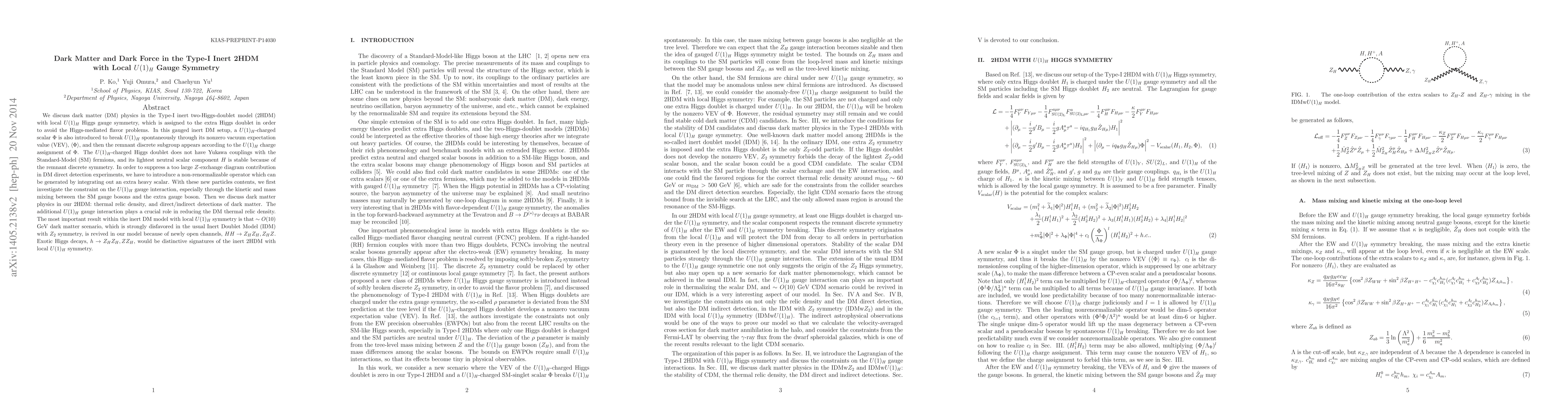 This paper explores dark matter (DM) in the Type-I inert 2HDM with local U(1)_H gauge symmetry, showing that the lightest neutral scalar can serve as stable DM. The additional U(1)_H gauge interaction helps reduce the DM thermal relic density, reviving the ~ O(10) GeV dark matter scenario in the model.